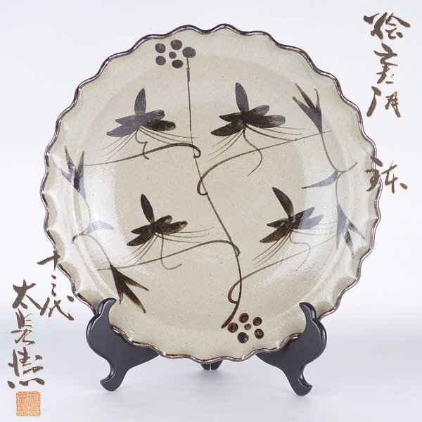 【扇屋】十三代 中里太郎右衛門「絵 唐津 鉢」共箱 約30cm 唐津焼 K-3