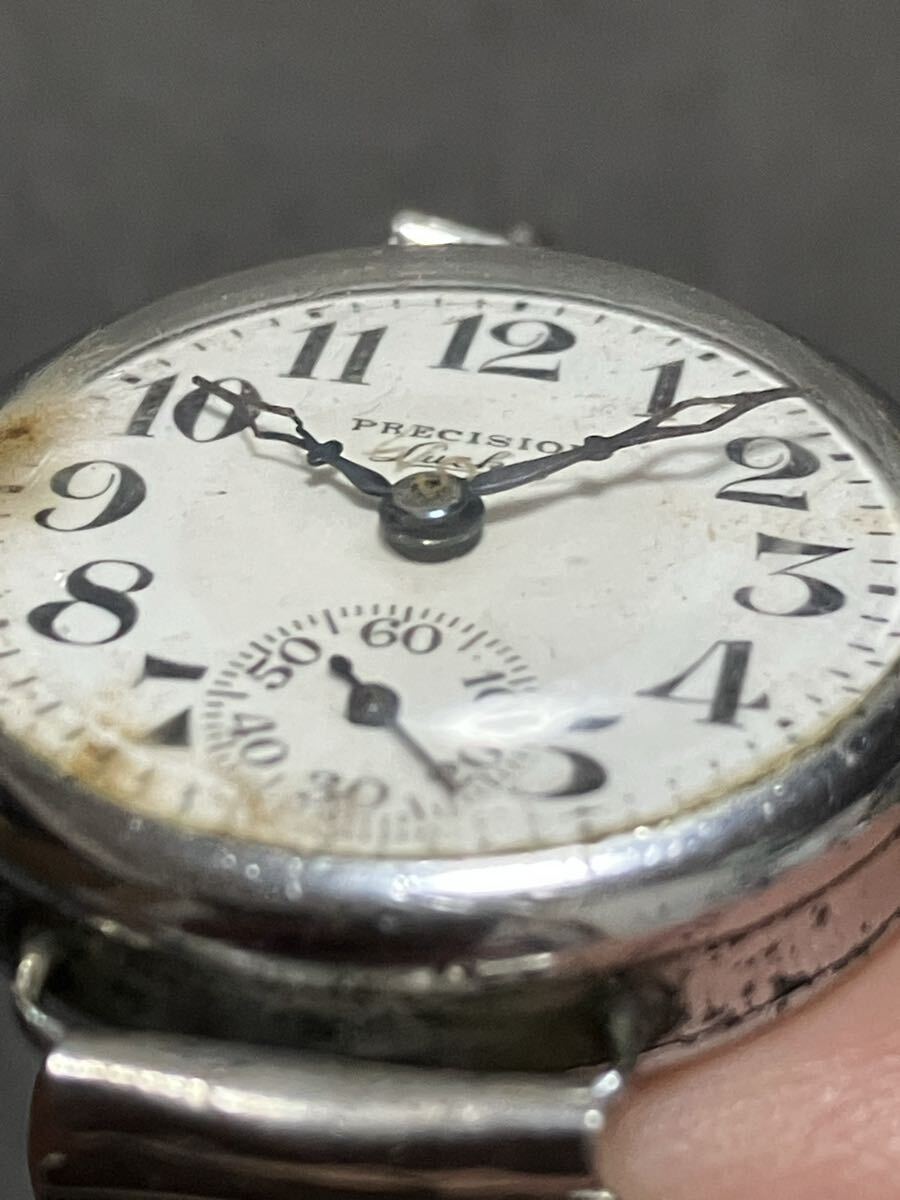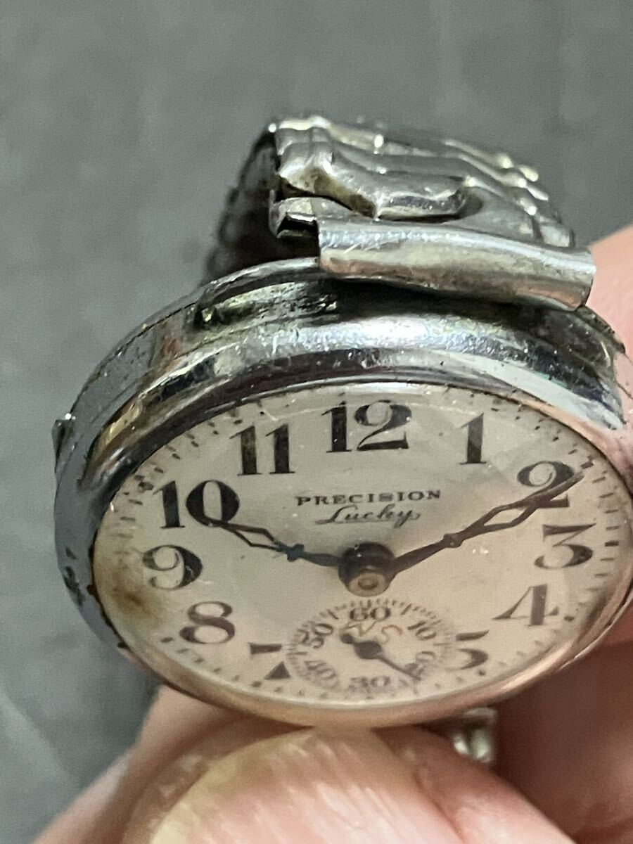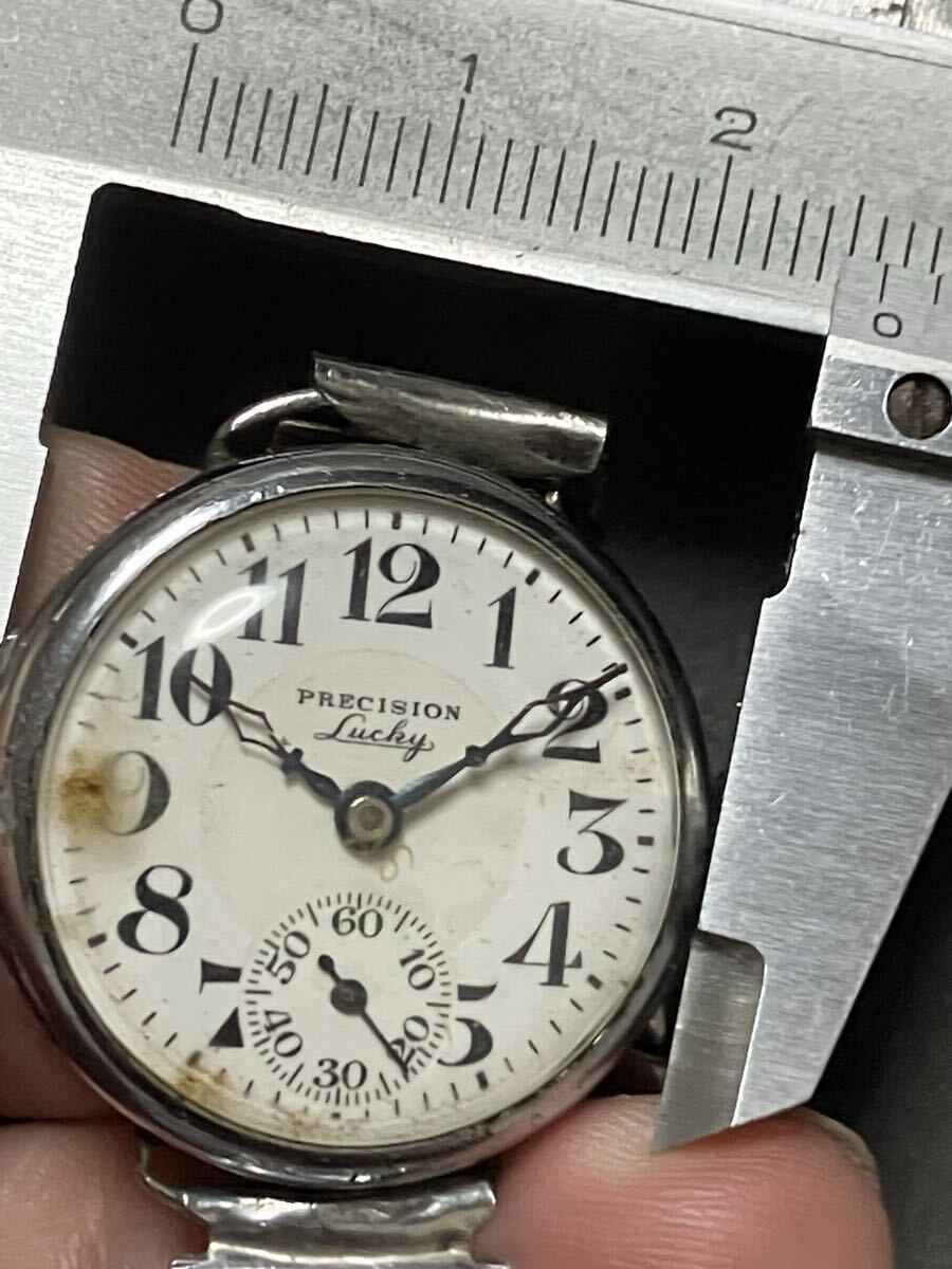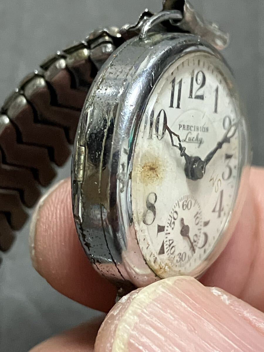 英工社(鶴巻時計店)のプレシジョンラッキー、かなり古いです、戦前だと思います、針も古いタイプです、部品どり、修理など、ジャンク扱いで!