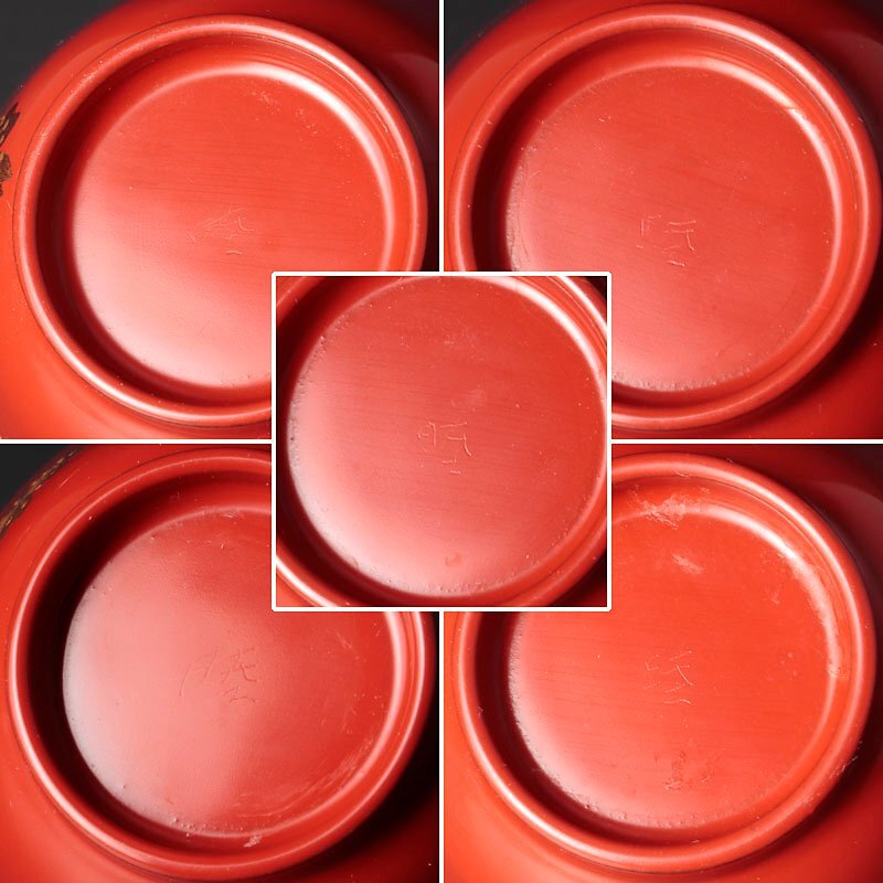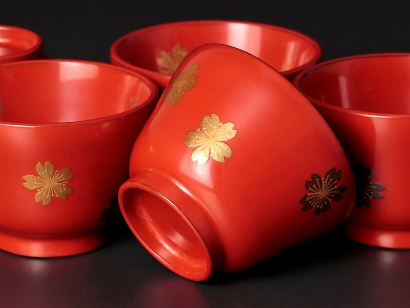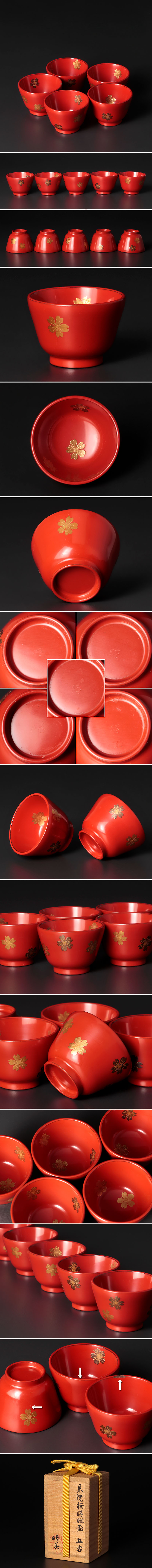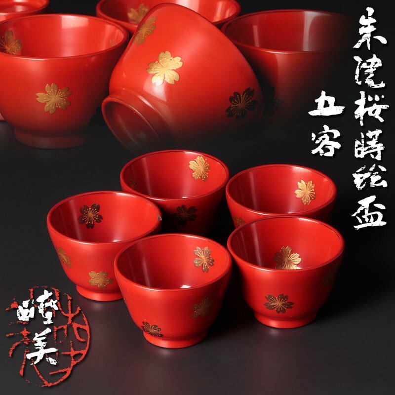| 【古美味】鈴木睦美 朱塗桜蒔絵盃 五客 茶道具 保証品 |