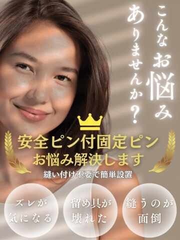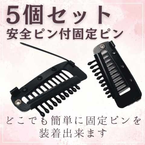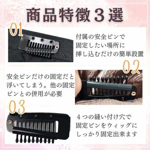 【安全ピン付固定ピン+】は固定ピンの上部に安全ピンを付けることで縫い付けを不要にしました。誰でも簡単にウィッグやヘアピースをより強固な装着を助けます