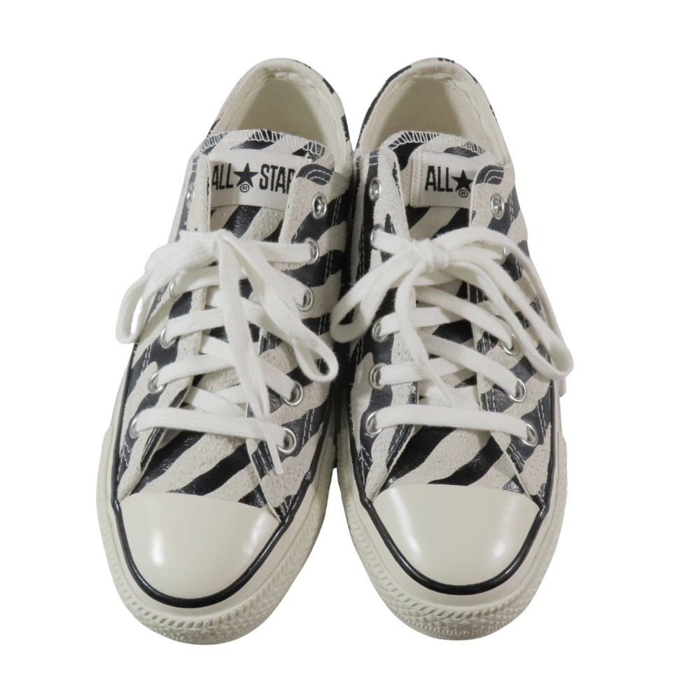 美品 CONVERSE コンバース ALL STAR 1SD050 ローカット スニーカー プリント ロゴ 革靴 レザー シューズ ゼブラ柄 24.0 白 黒