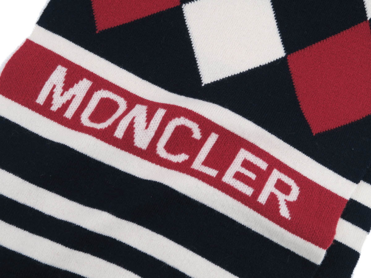価格13万新品本物モンクレールMONCLER注目度◎【首元暖かダウン入り×バージンウール】トリコロール柄!!即完売ニットマフラー/正規店