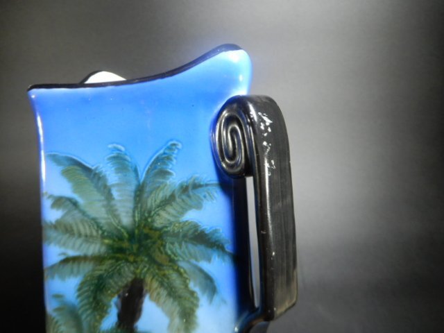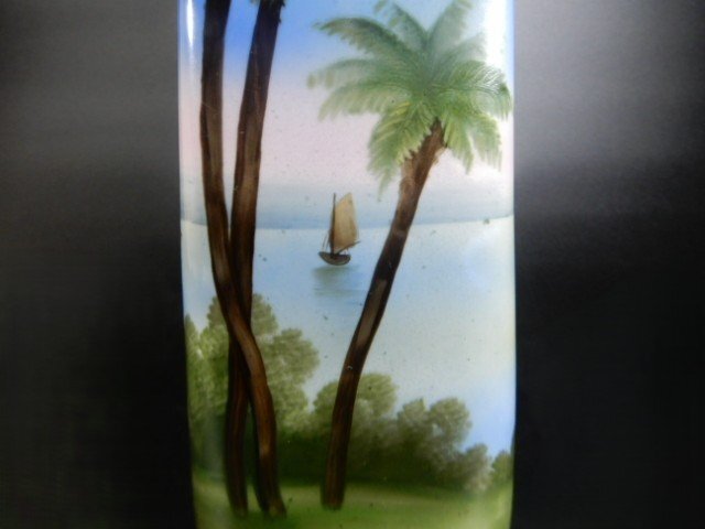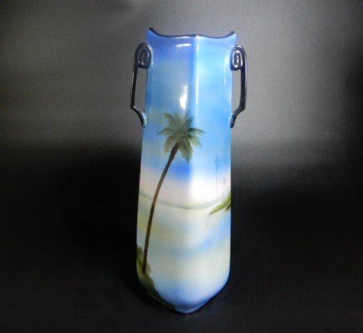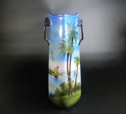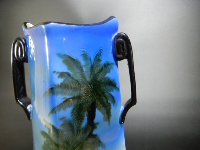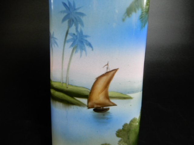 オールドノリタケ 耳付き 花瓶 風景図(海) ハンドペイント 高さ約32cm インテリア コレクション 箱付き V-1100