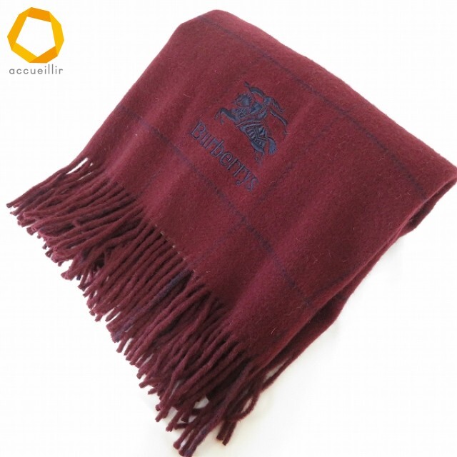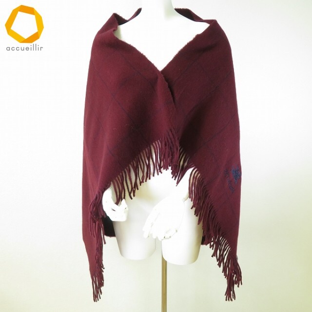 | 商品名 | #we バーバリー BURBERRY ストール ショール ブランケット エンジ系 紺 格子柄 騎士マーク 刺繍 ウール レディース [972999] k01 |