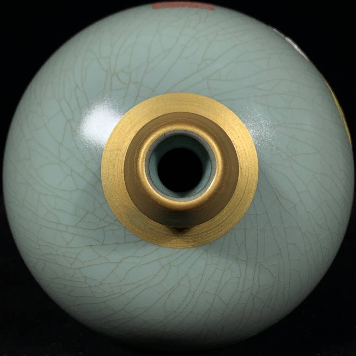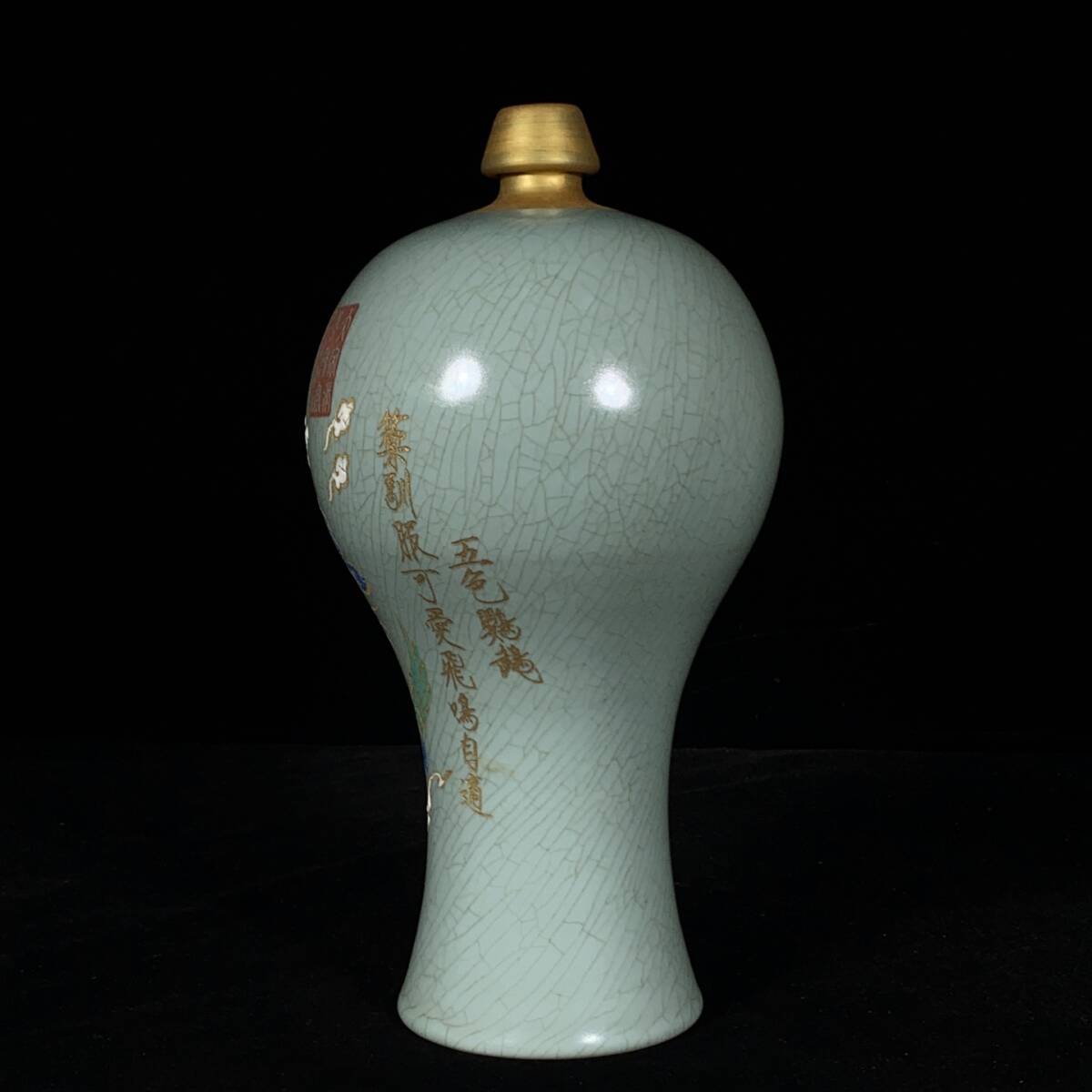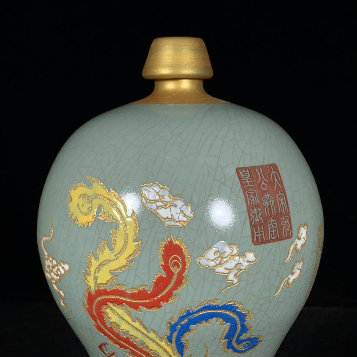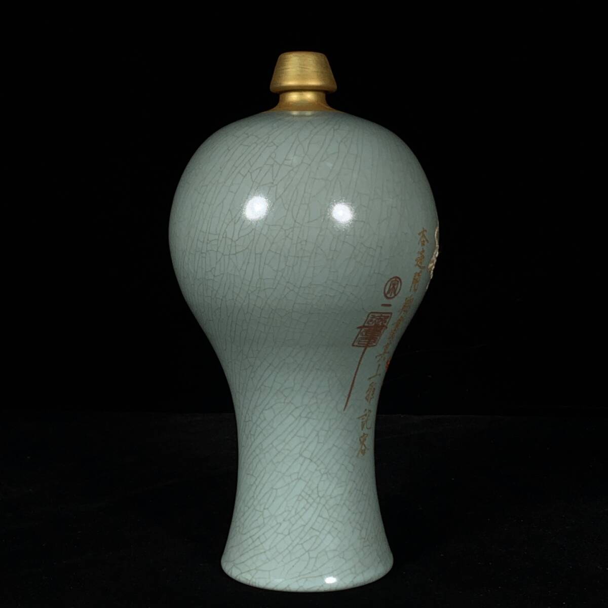 【超珍館蔵】宋 古陶瓷品 汝窯 彩繪 銘文 鳳紋 梅瓶 陶藝 古賞物 古董品 古美術品 時代物 旧家蔵出 稀少珍蔵品