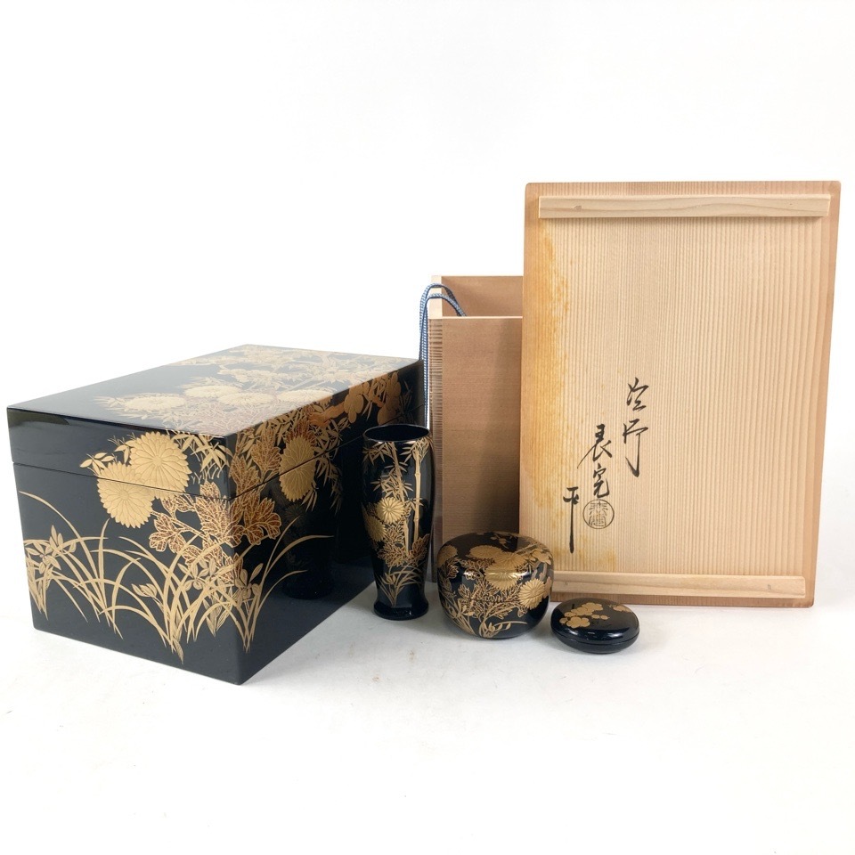 | 商品名 | 川瀬表完 四君子蒔絵茶箱 棗 香合 茶筅筒 杓立添 共箱 茶道具 漆器 茶道具 4253639 |