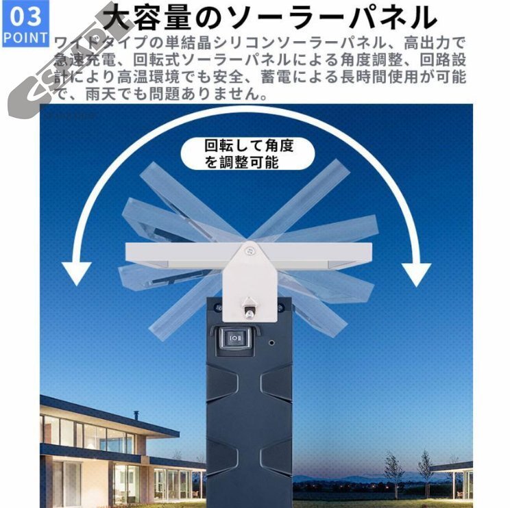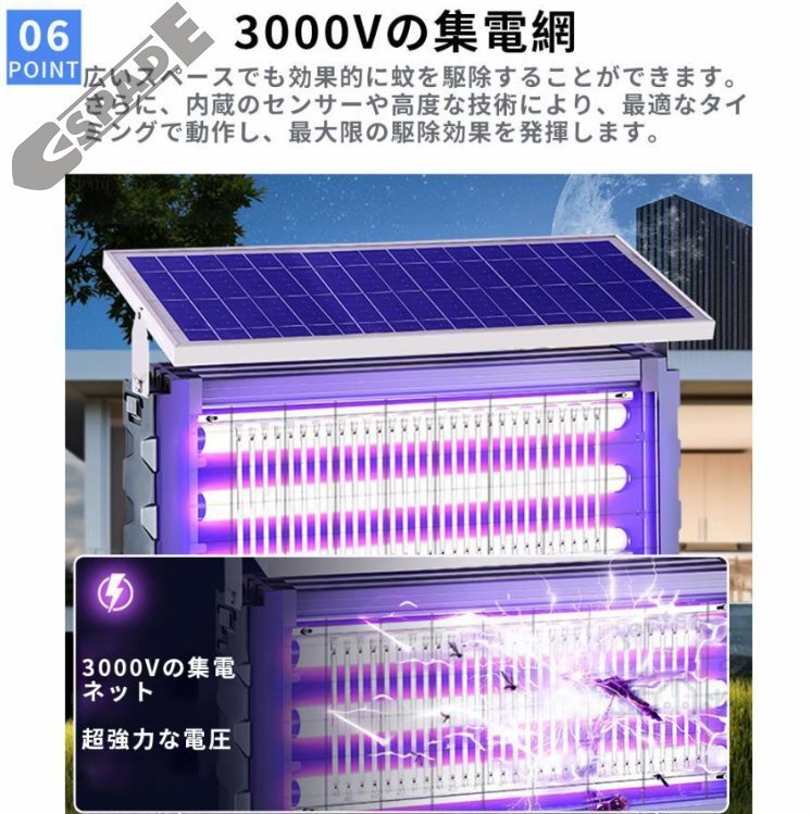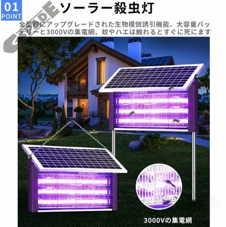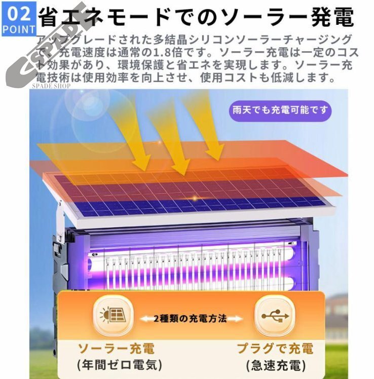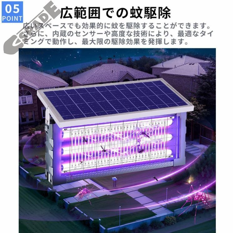 | 【省エネの蚊とり器】 | 太陽エネルギー充電方式を採用しており、非常に省エネです。24時間常に蚊を駆除し、省エネで経済的かつ環境に優しく、ほとんど電力を消費しません。害虫が高電圧がかけられたグリッドを通過する瞬間、グリッドの絶縁が破壊されて放電が発生し、ブザー音と放電の光が発生して複数の害虫を駆除することができます。わずか35Wで十分に害虫を駆除でき、非常に環境に優しく、省エネです! |