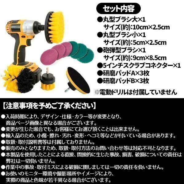 電動ドリル用 ブラシ 掃除ブラシ 10点セット キッチン 台所 床 浴漕 お風呂 ポリッシャー バフ ポリッシング スポンジ