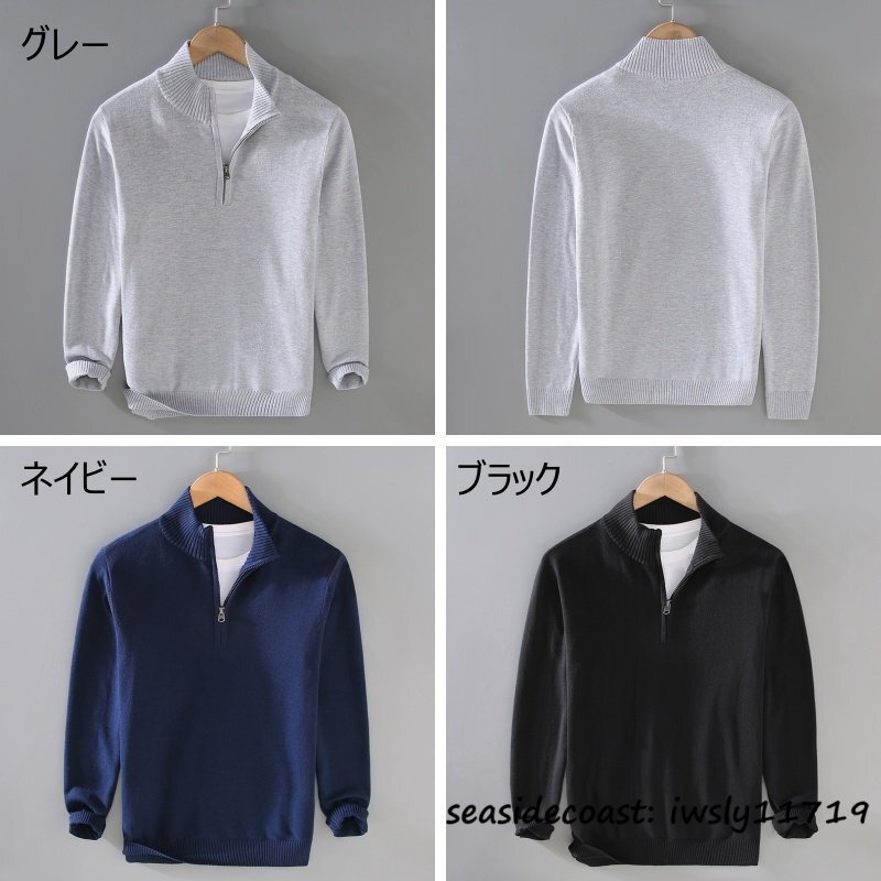 新品◆秋冬 ニットセーター 無地 ウール混 厚手 ハイネック コットン 柔らか 暖かい 長袖 トップス インナー アウター 防寒 グレー L
