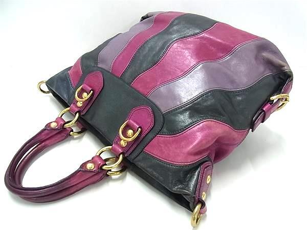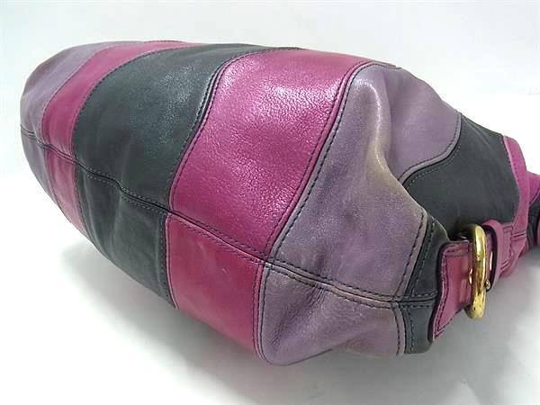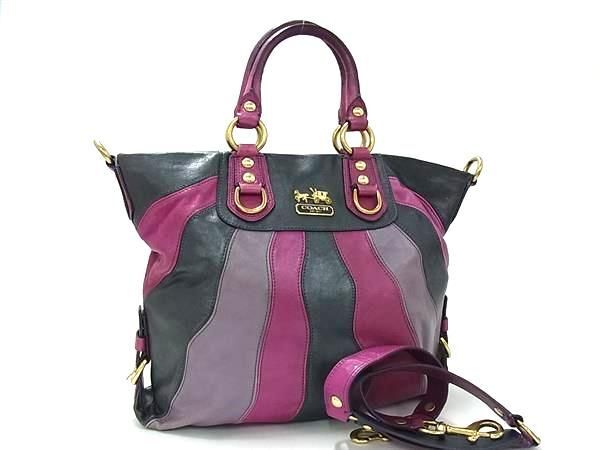 1円 COACH コーチ 12956 ジュリアン レザー 2WAY ハンドバッグ ショルダー クロスボディ レディース パープル系×ダークグレー系 BM9785
