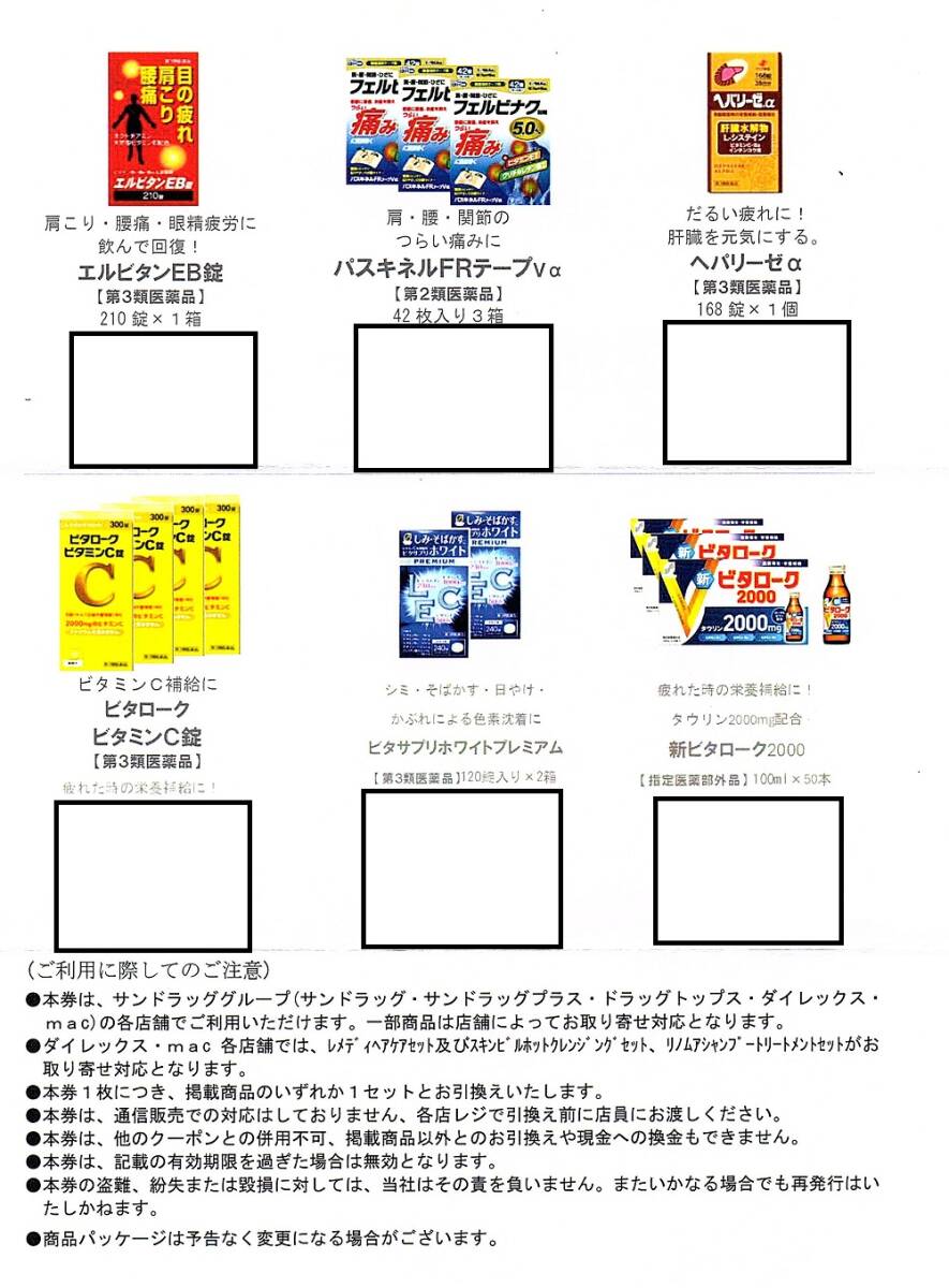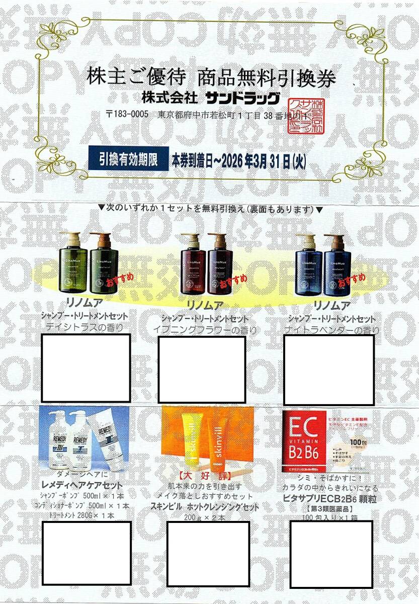 サンドラッグ 株主優待券 商品無料引換券 1枚(単位) 〜2枚迄 2026年3月末迄有効