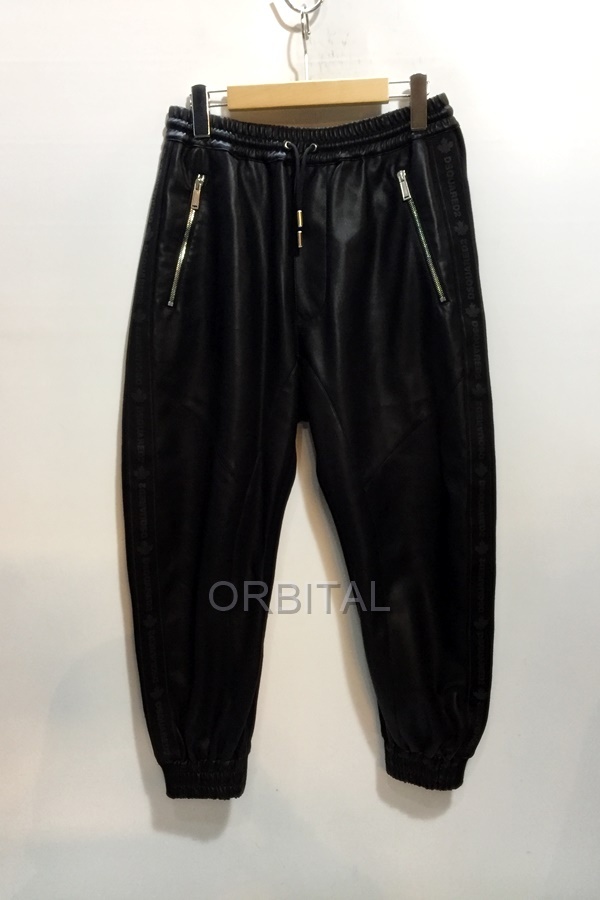 代官山)DSQUARED2 ディースクエアード 24SS HYBRID SWAG TRACK PANTS フェイクレザー ハイブリッドトラックパンツ ブラック42