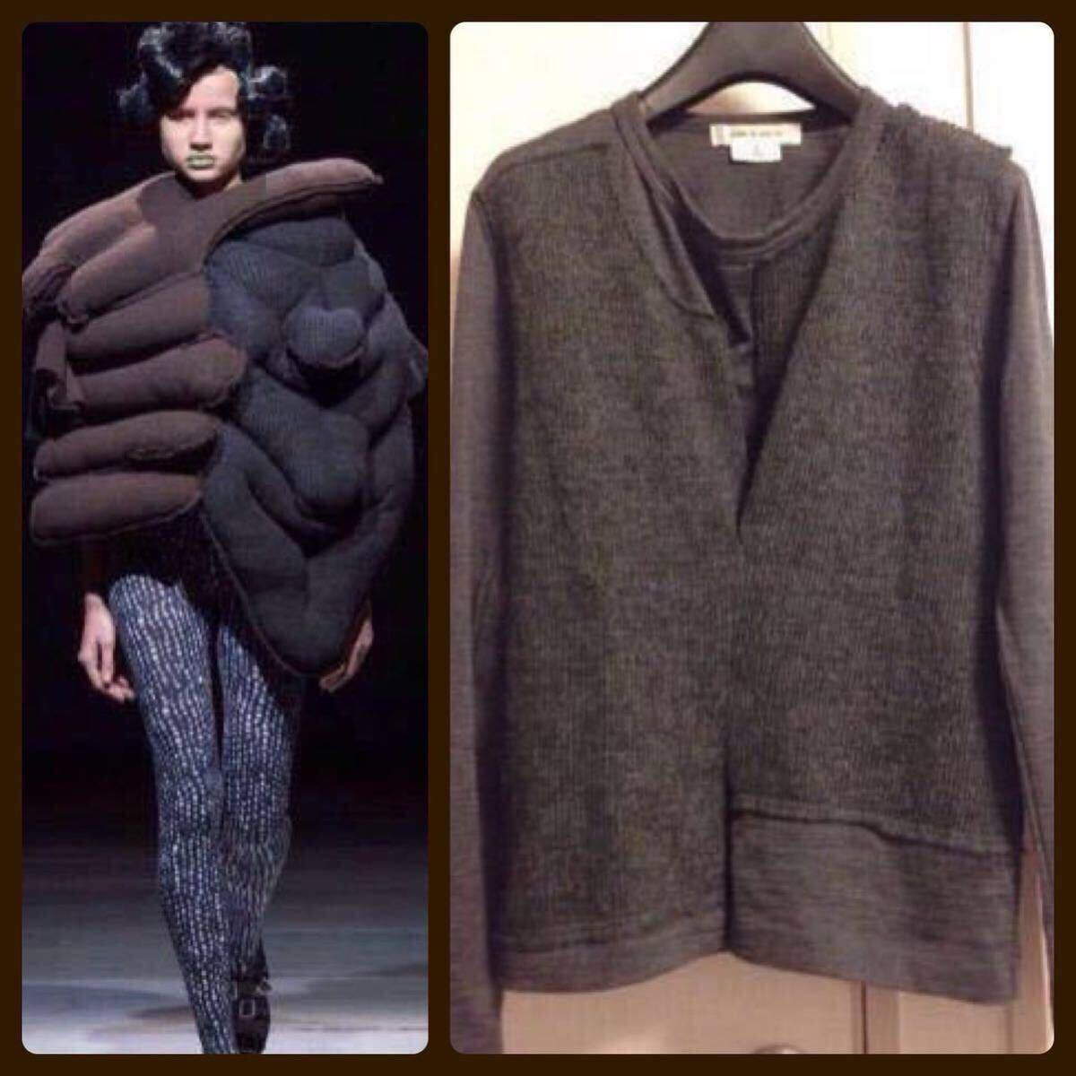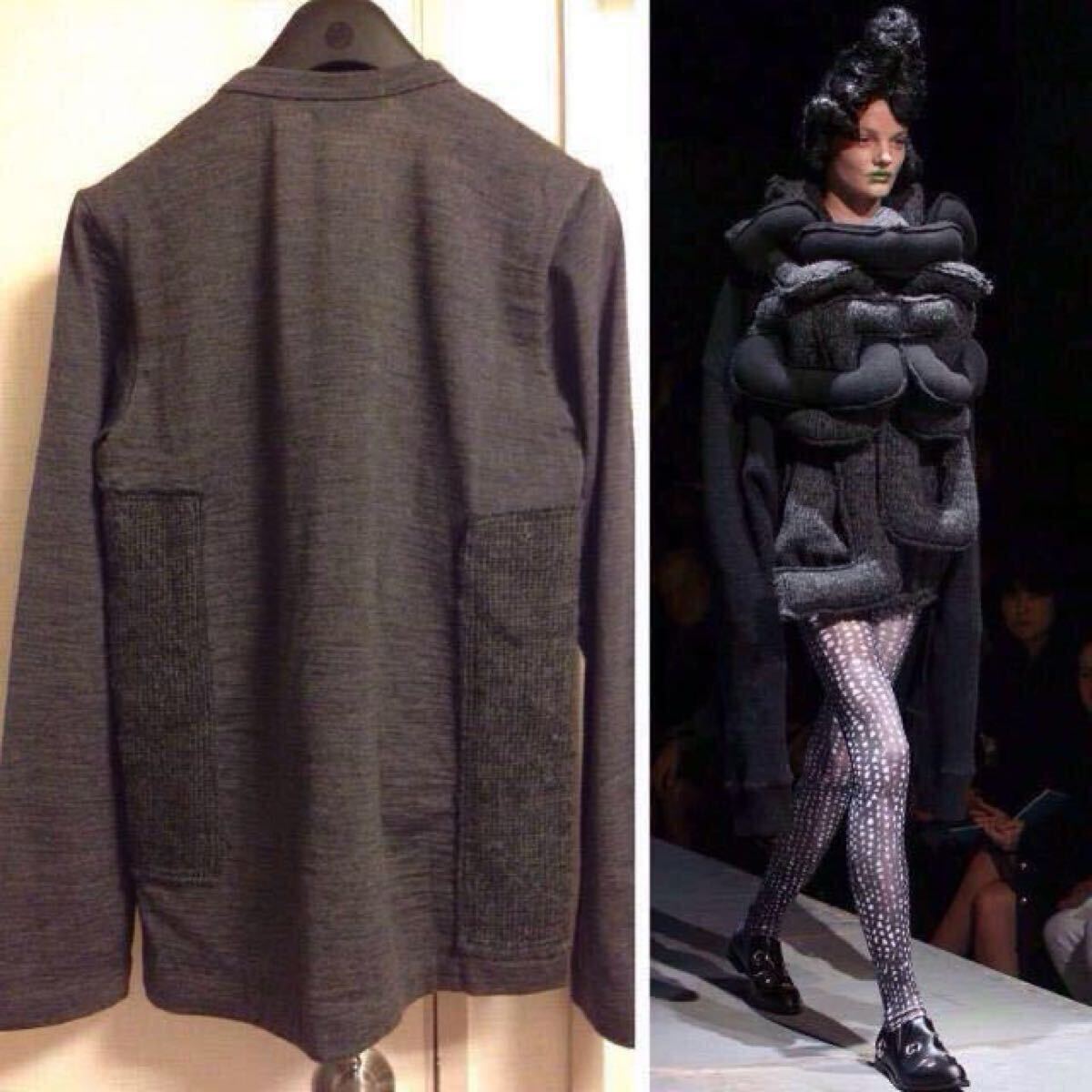 複雑に組み合わされたドッキングニットがとてもコムデギャルソンらしく、2014コレクションの特徴的な変形フォルムを見事に日常着用可能なデザインへと落し込んでいます。