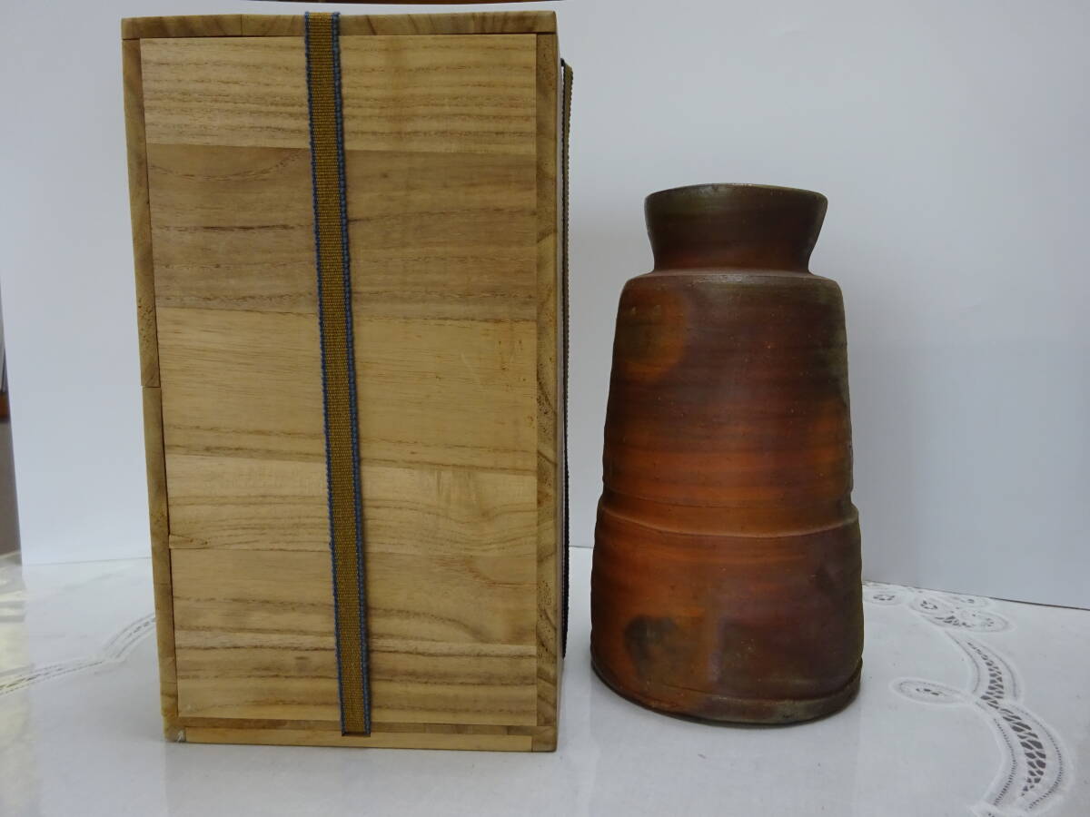 ●備前焼の人気実力作家 高原昌治(師:県重要無形文化財伊勢崎陽山、石井不老)さんの 備前窯変花入れ花器です。●共箱がついています。