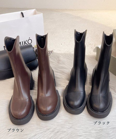 チャンキーヒール ミドルブーツ ラウンドトゥ カジュアル靴 秋冬 バックジップブーツ 履きやすい 疲れにくいくつ人気新作