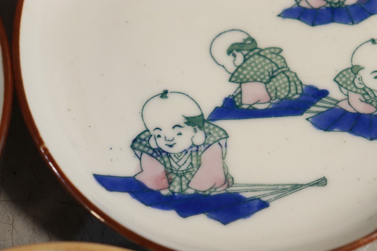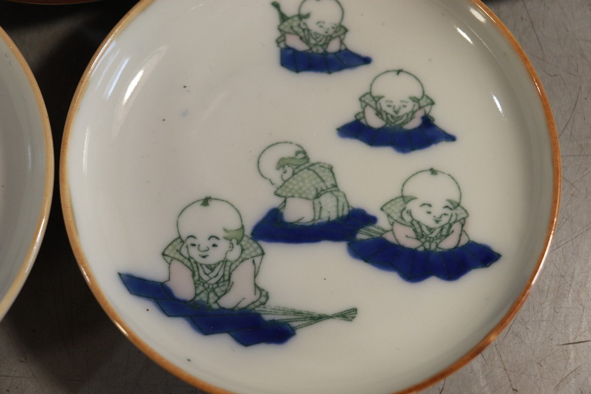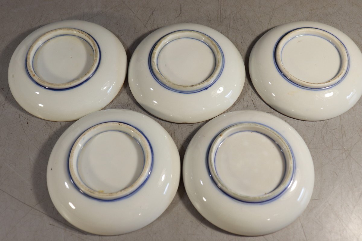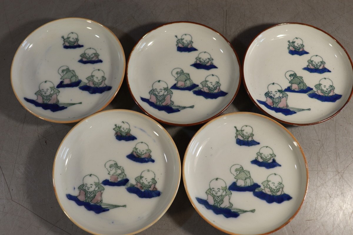 E542 伊万里印判小皿 5枚 福助図 和骨董 和食器 料理皿 印判皿/54961