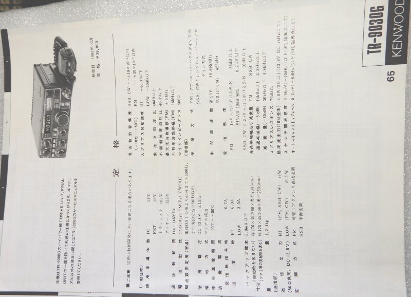 TRIO TR-9030G 2m ALL MODE TRANSCEIVER用サービスマニュアルに付いていた回路図
