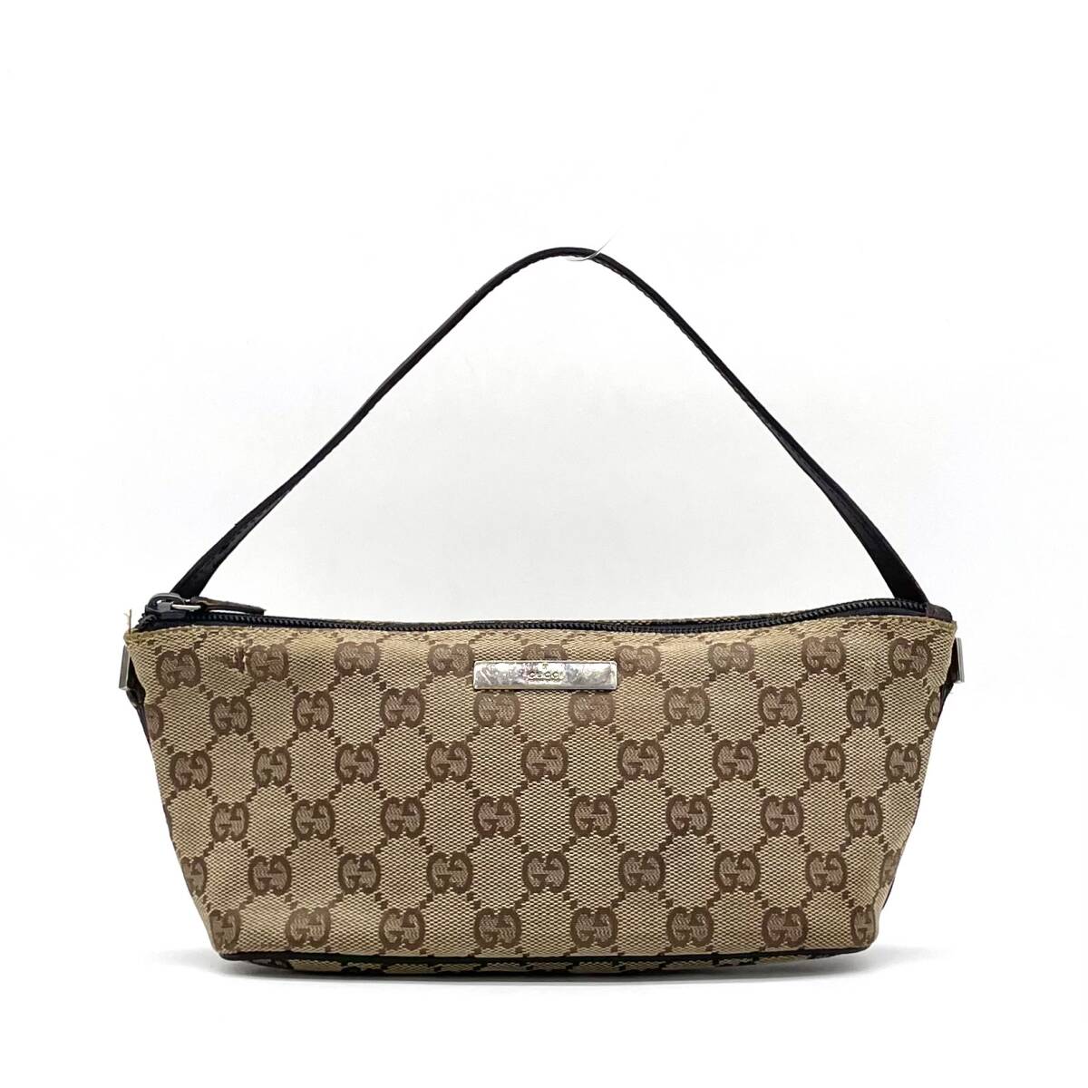 | GUCCI GGキャンバス レザー アクセサリーポーチ ハンドバッグ ブラウン | |