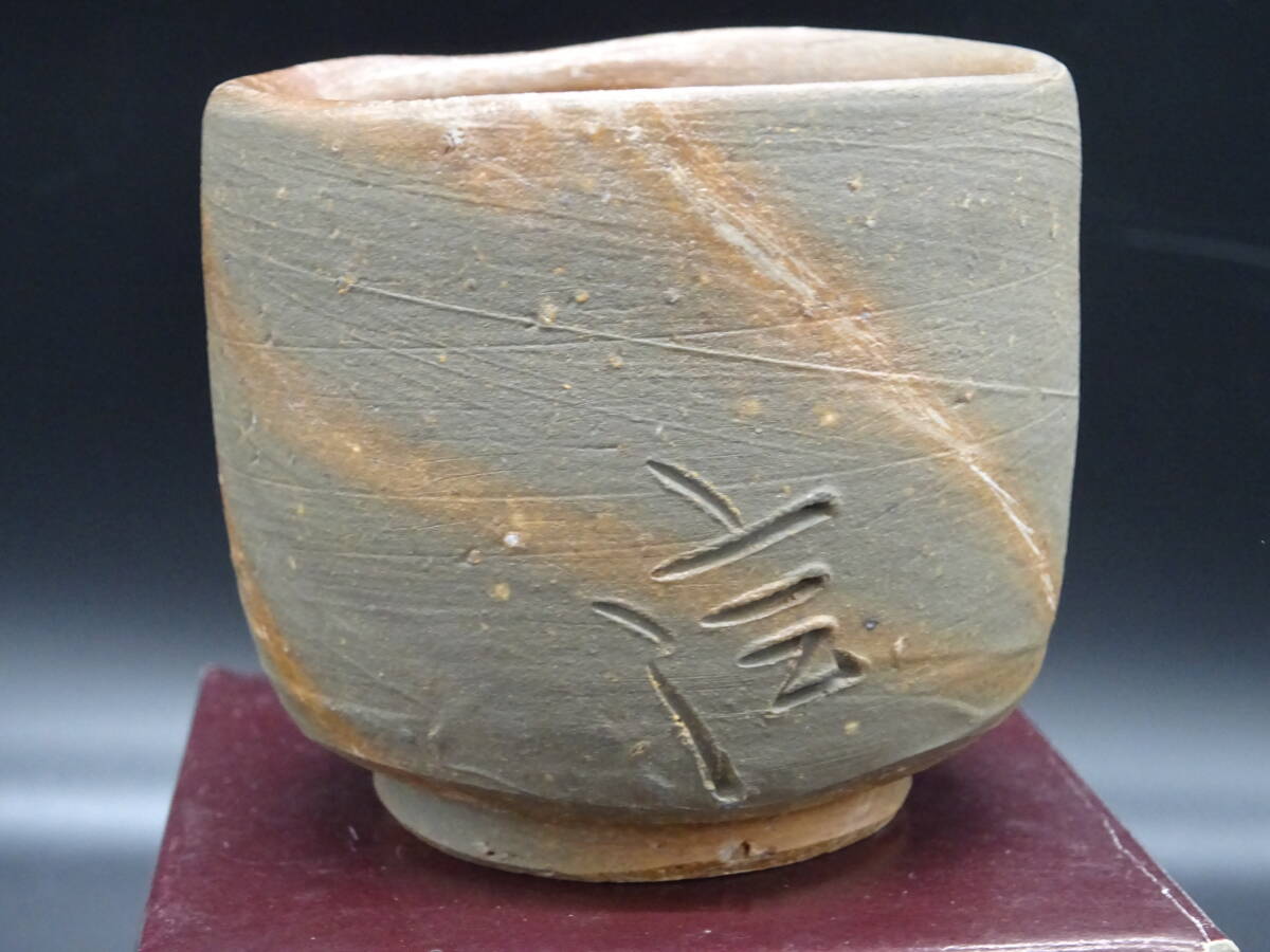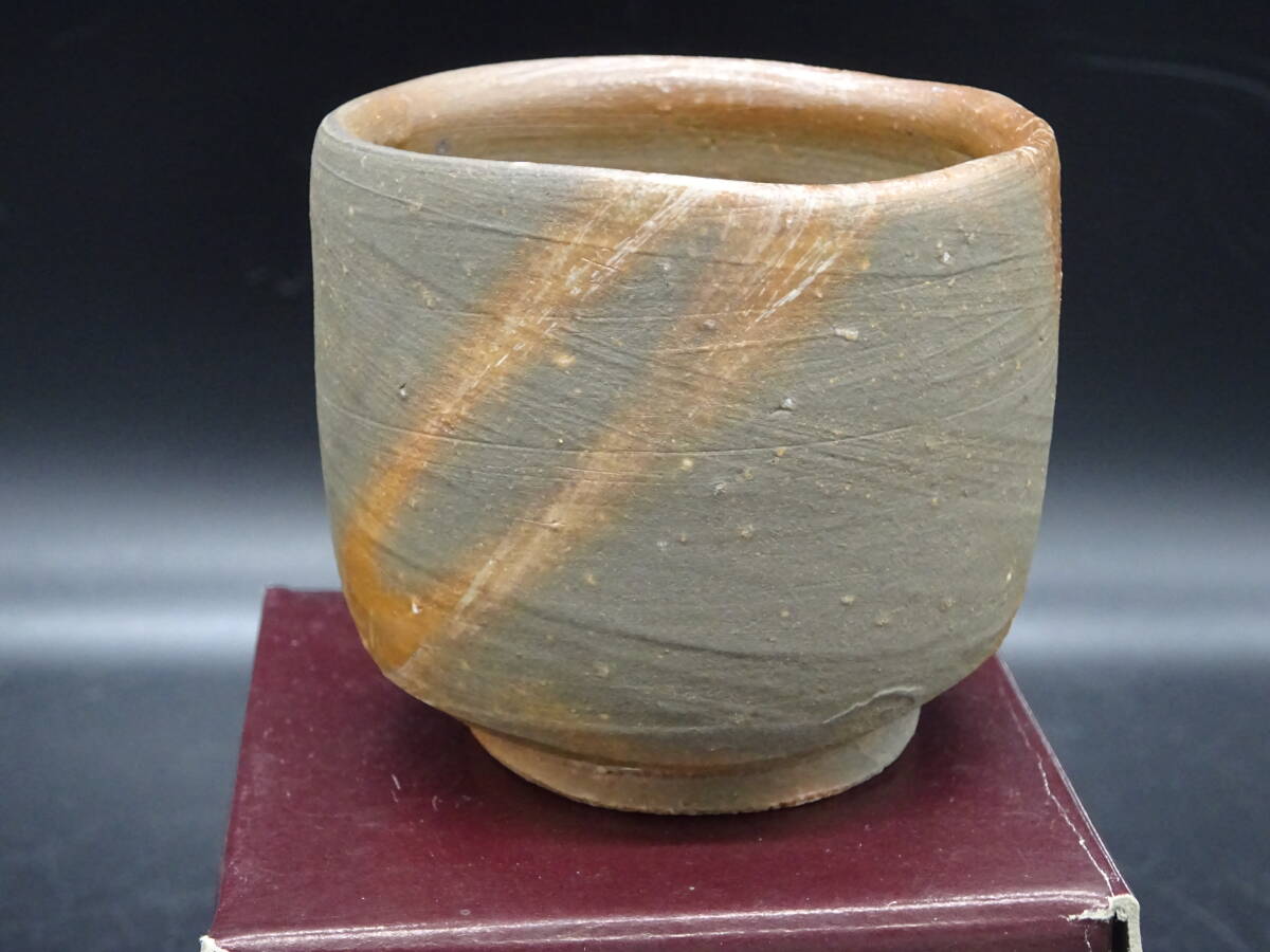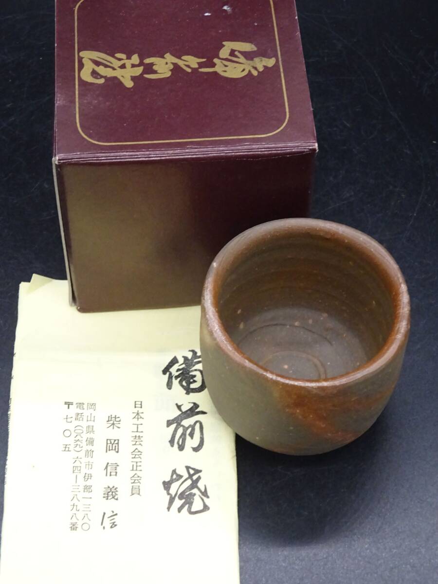 ●日本工芸会正会員 人気実力作家 柴岡信義(備前市無形文化財)さんの 備前 青備前緋襷ぐいのみです。●紙箱、 陶歴がついています。