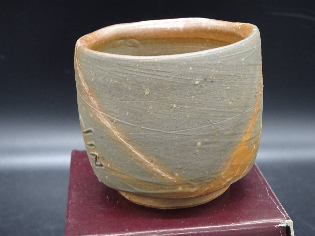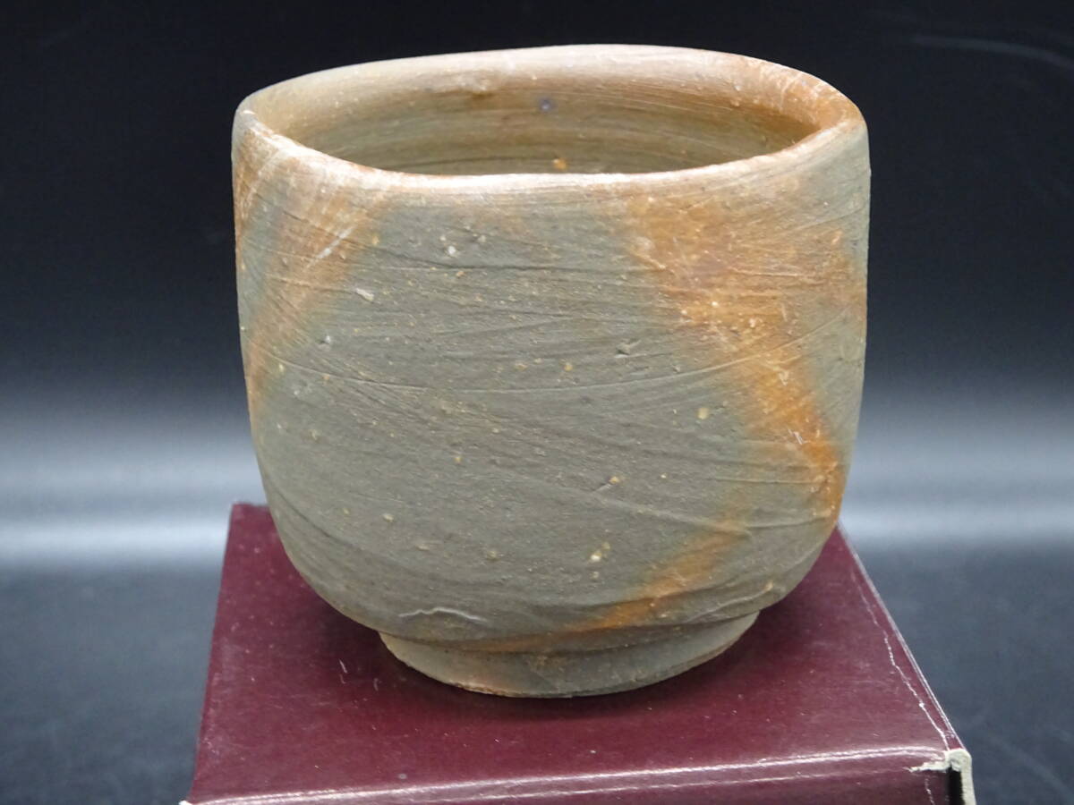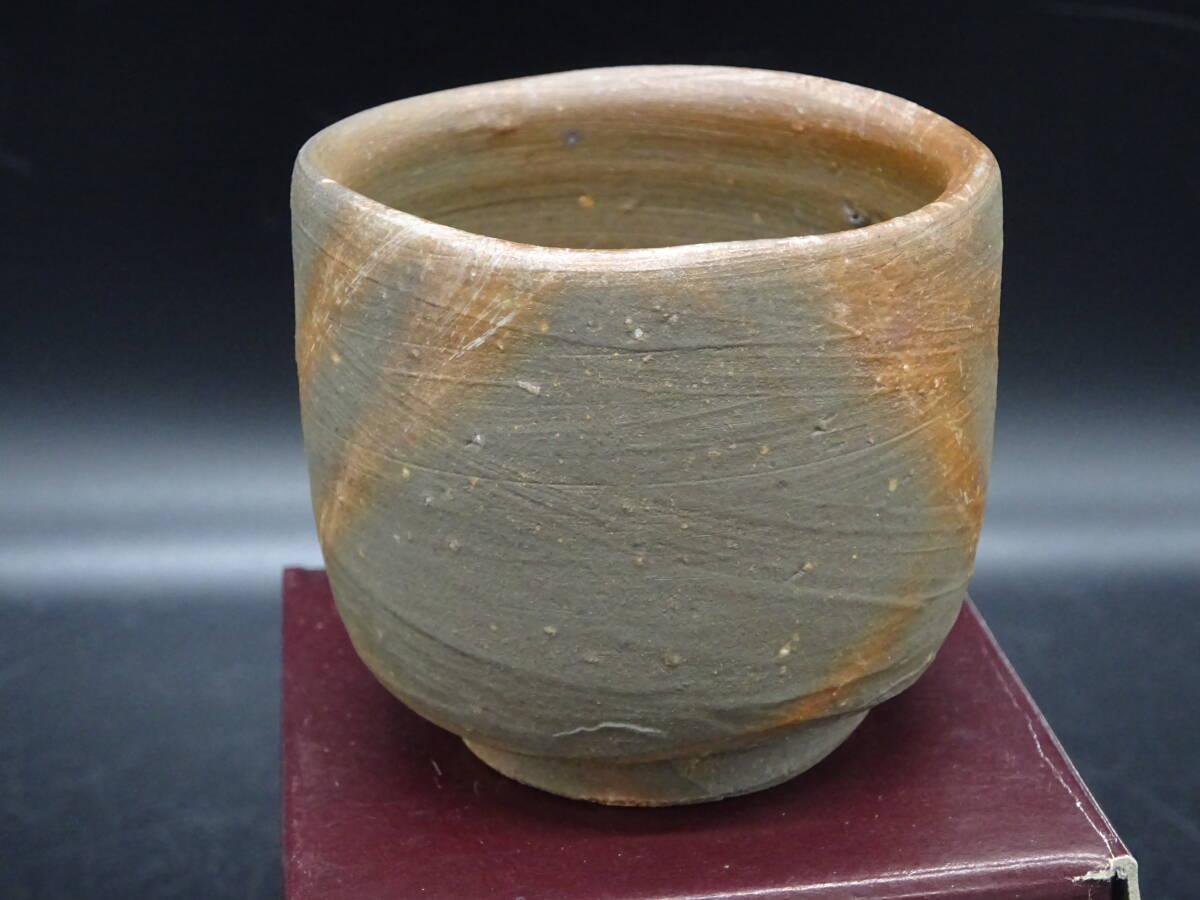 ●日本工芸会正会員 人気実力作家 柴岡信義(備前市無形文化財)さんの 備前 青備前緋襷ぐいのみです。●紙箱、 陶歴がついています。