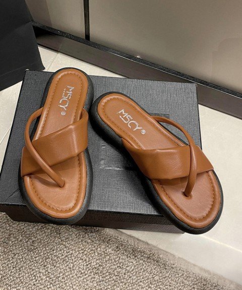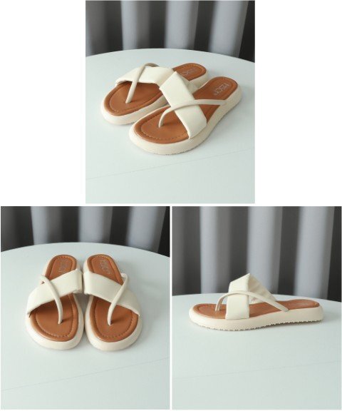 タウンユースからリゾートまで使える、アシンメトリーなデザインのトングサンダル。