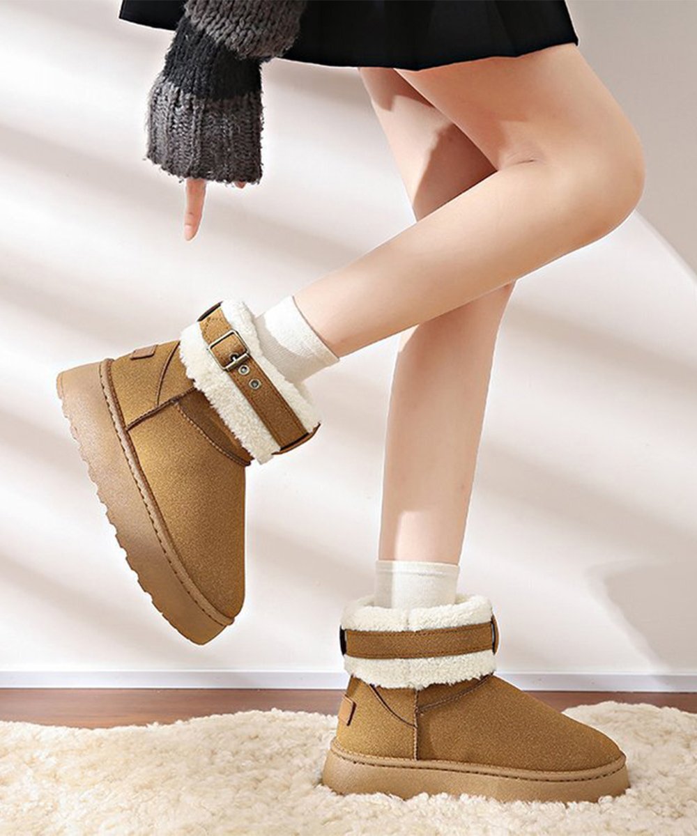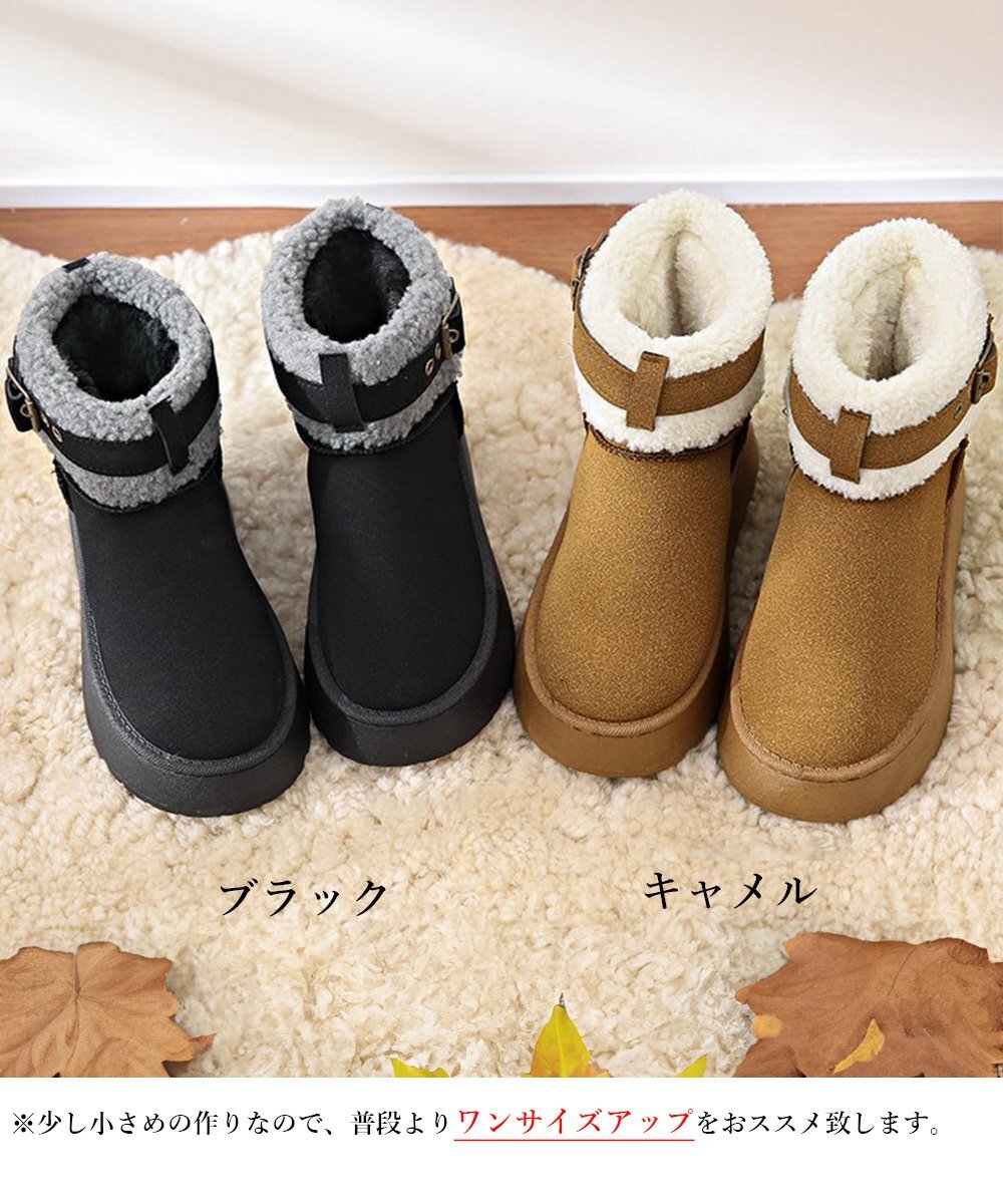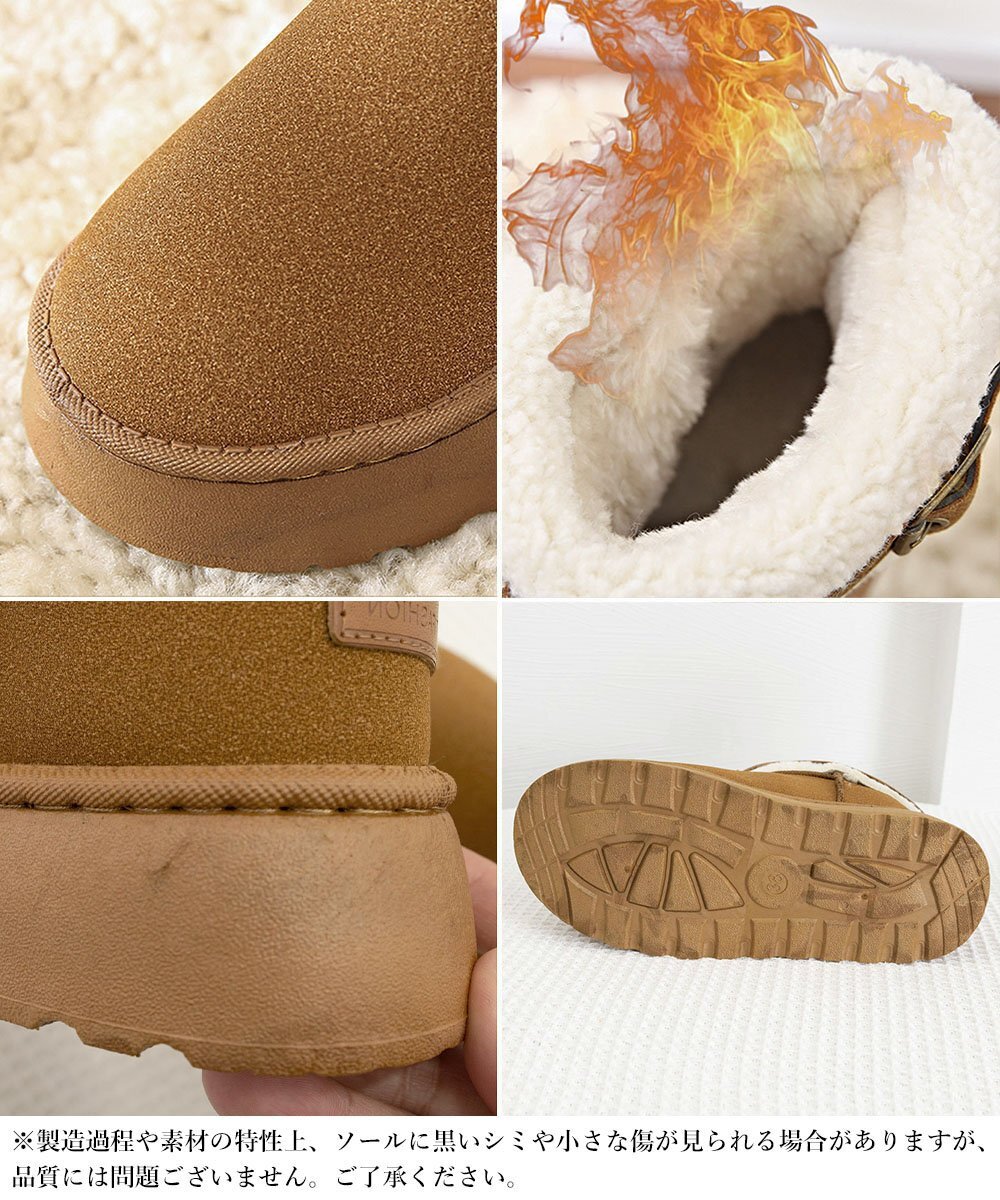 寒い季節にぴったりで、足元をしっかり保温し、暖かく快適な裏起毛フェイクムートンブーツ。