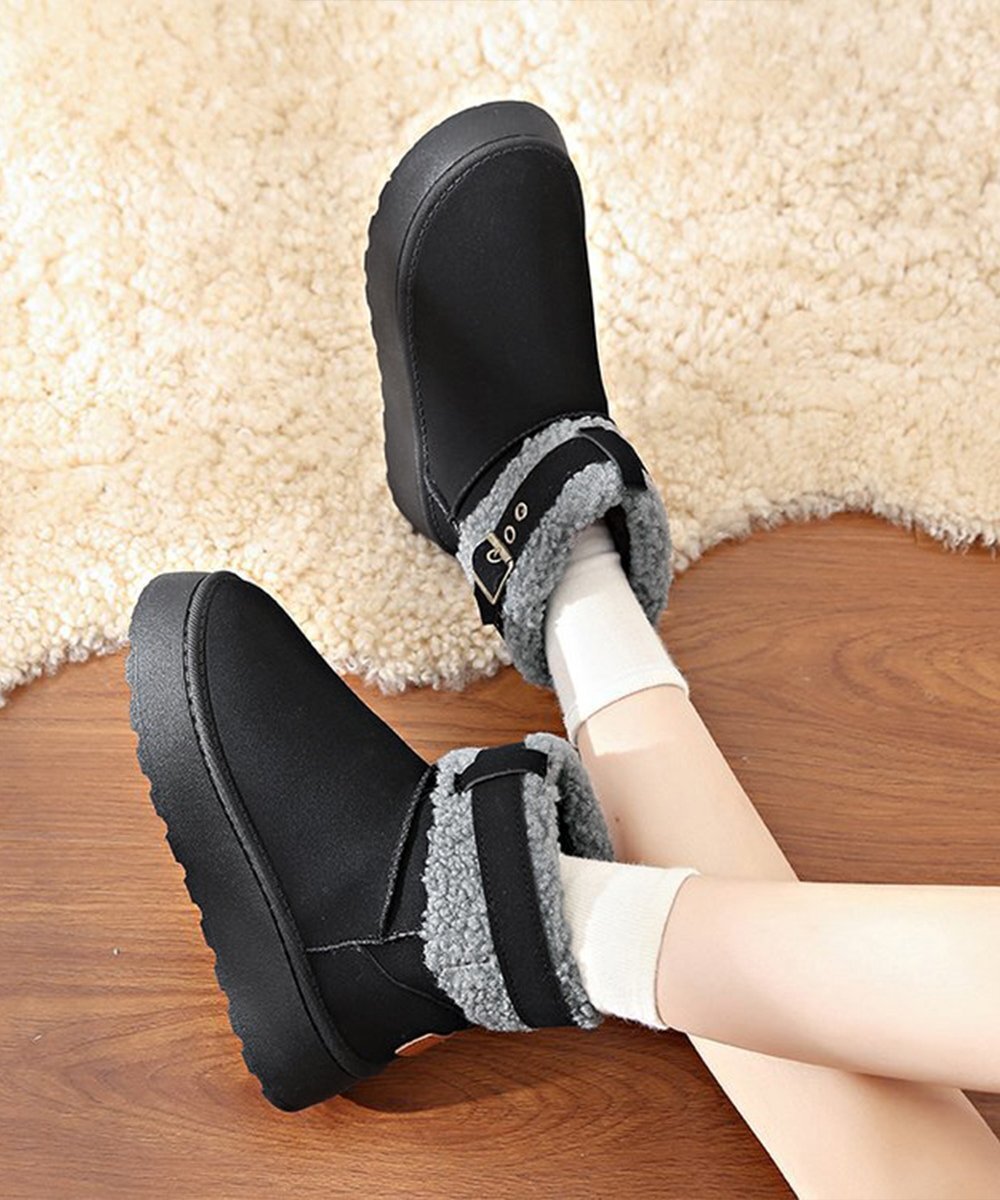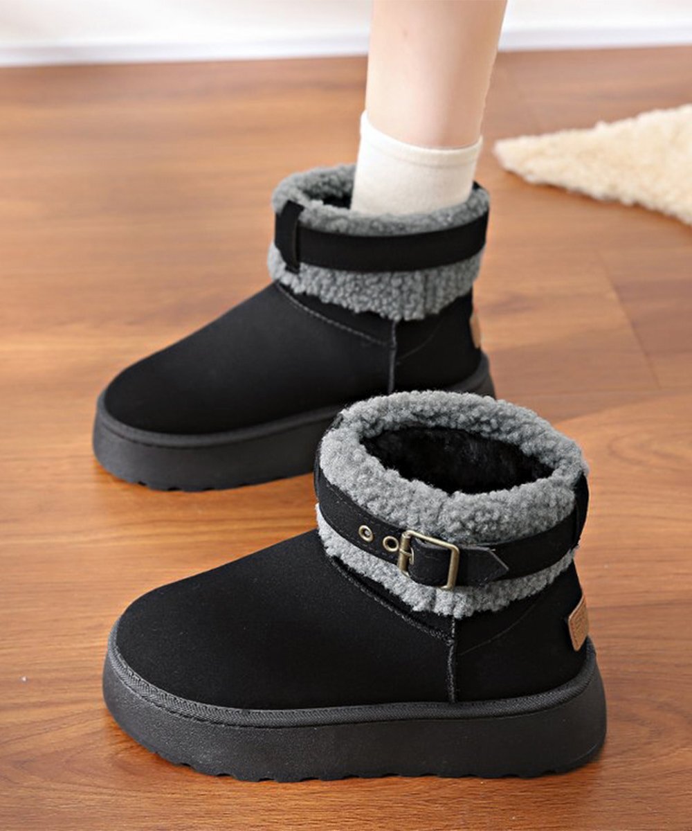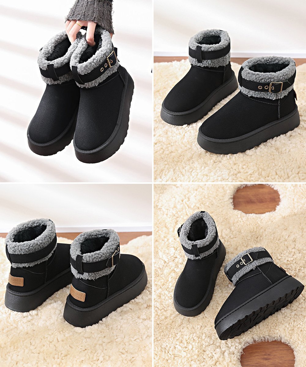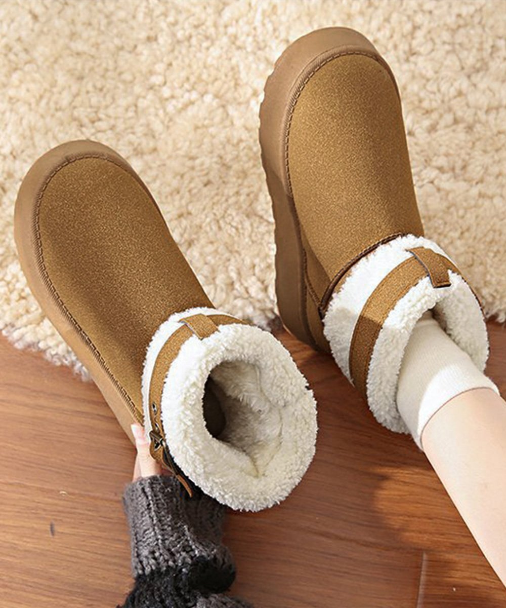寒い季節にぴったりで、足元をしっかり保温し、暖かく快適な裏起毛フェイクムートンブーツ。
