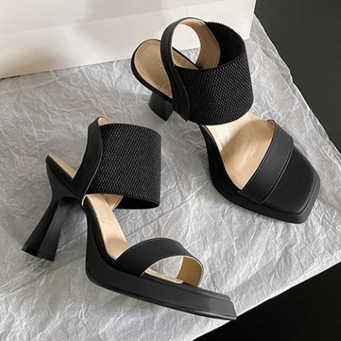 フェイクレザー夏靴 新作サマーシューズ 太ヒールサンダル