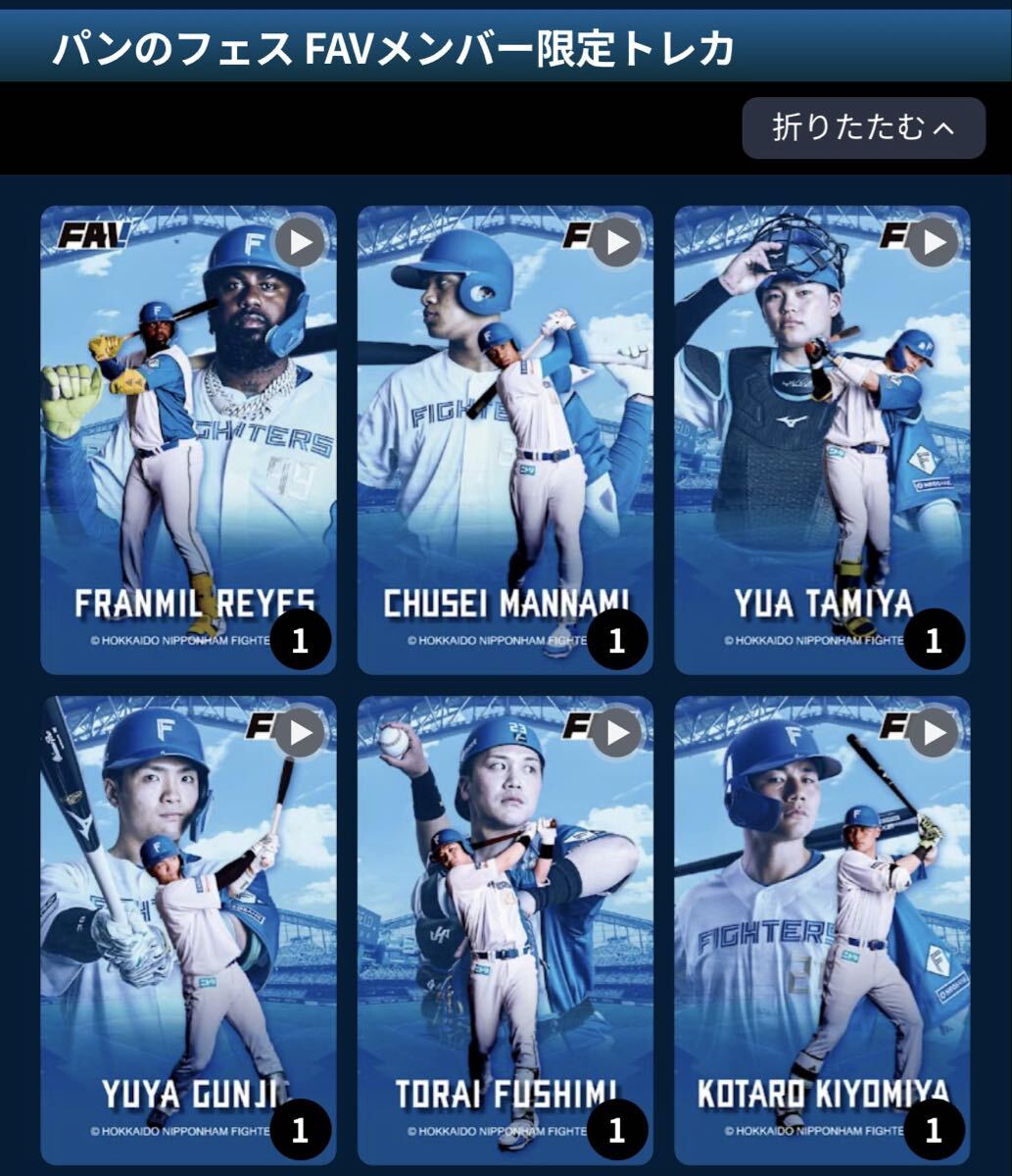ファイターズトレカ パンのフェス FAVメンバー限定トレカ 全10種 パスワードのみ