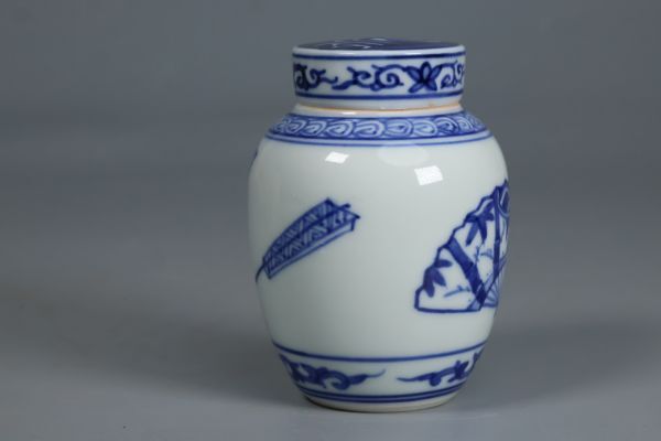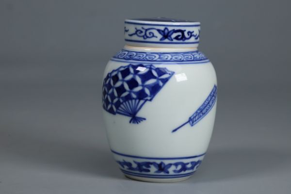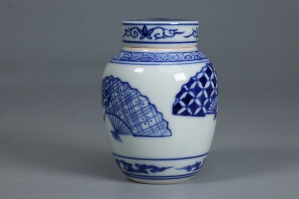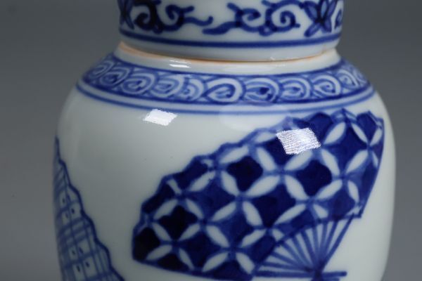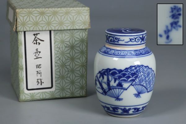 昭阿弥 染付 茶壺 扇子図 茶器 煎茶道具 染付 茶道 美品