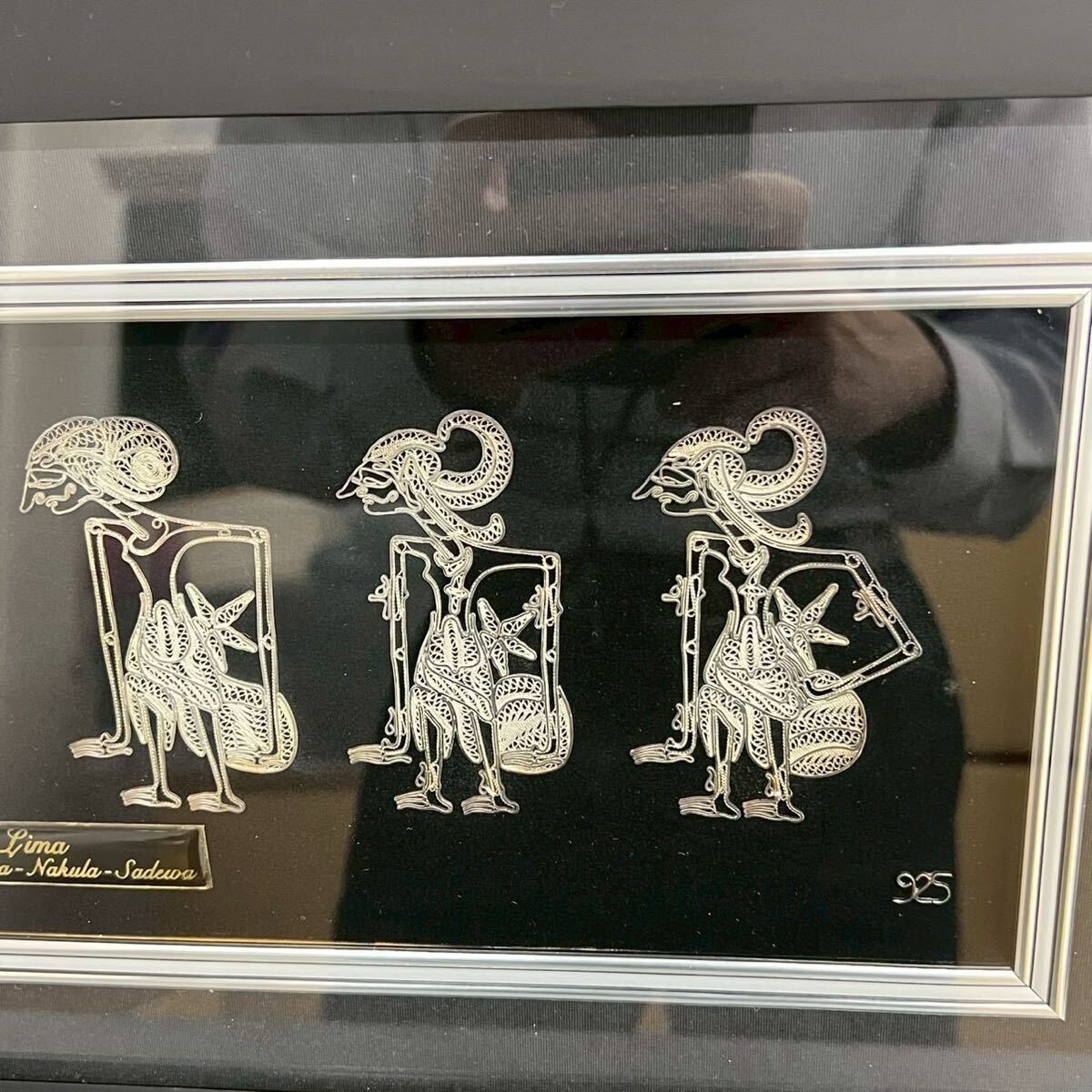 1円 極美品 インドネシア シルバー 額装 金属工芸 絵画