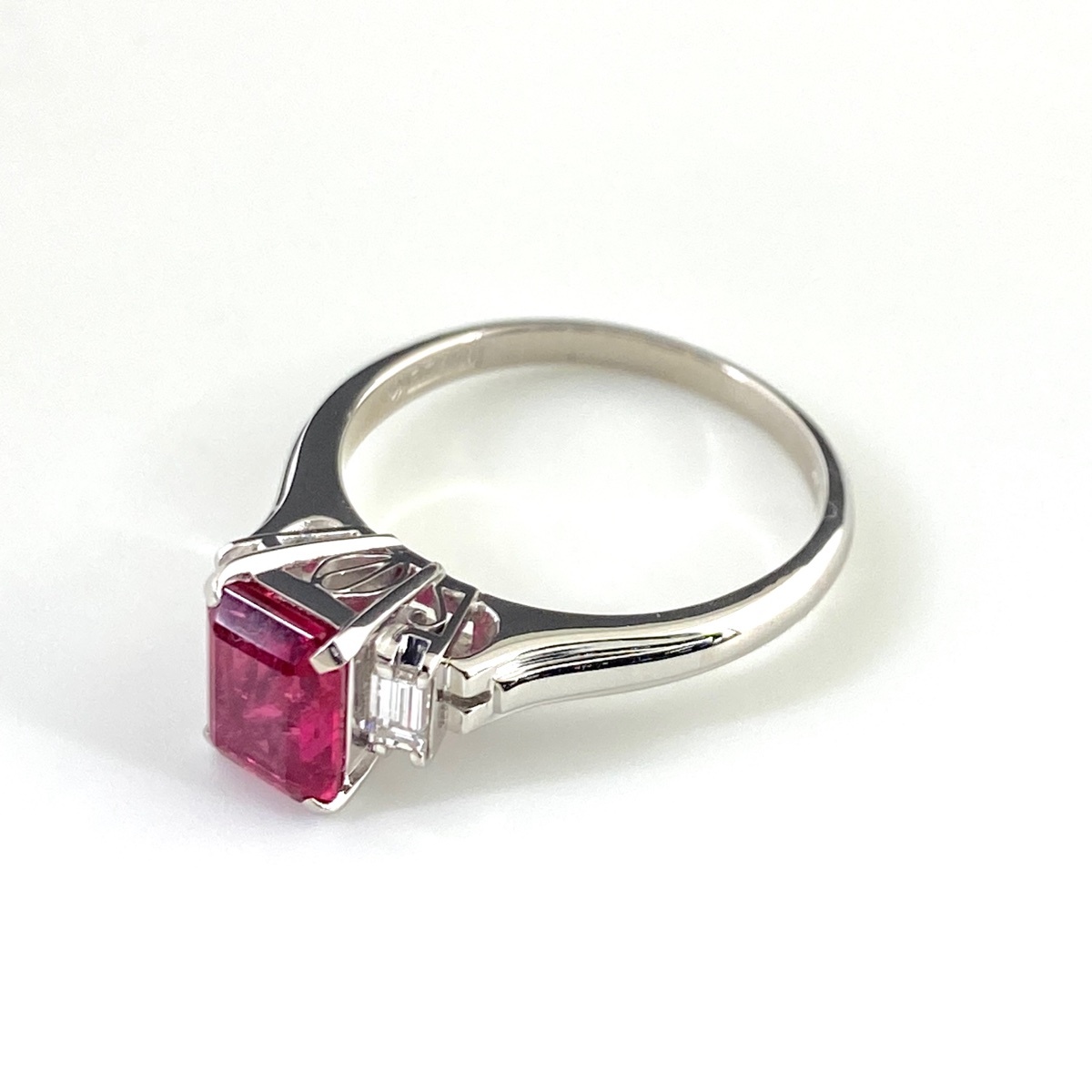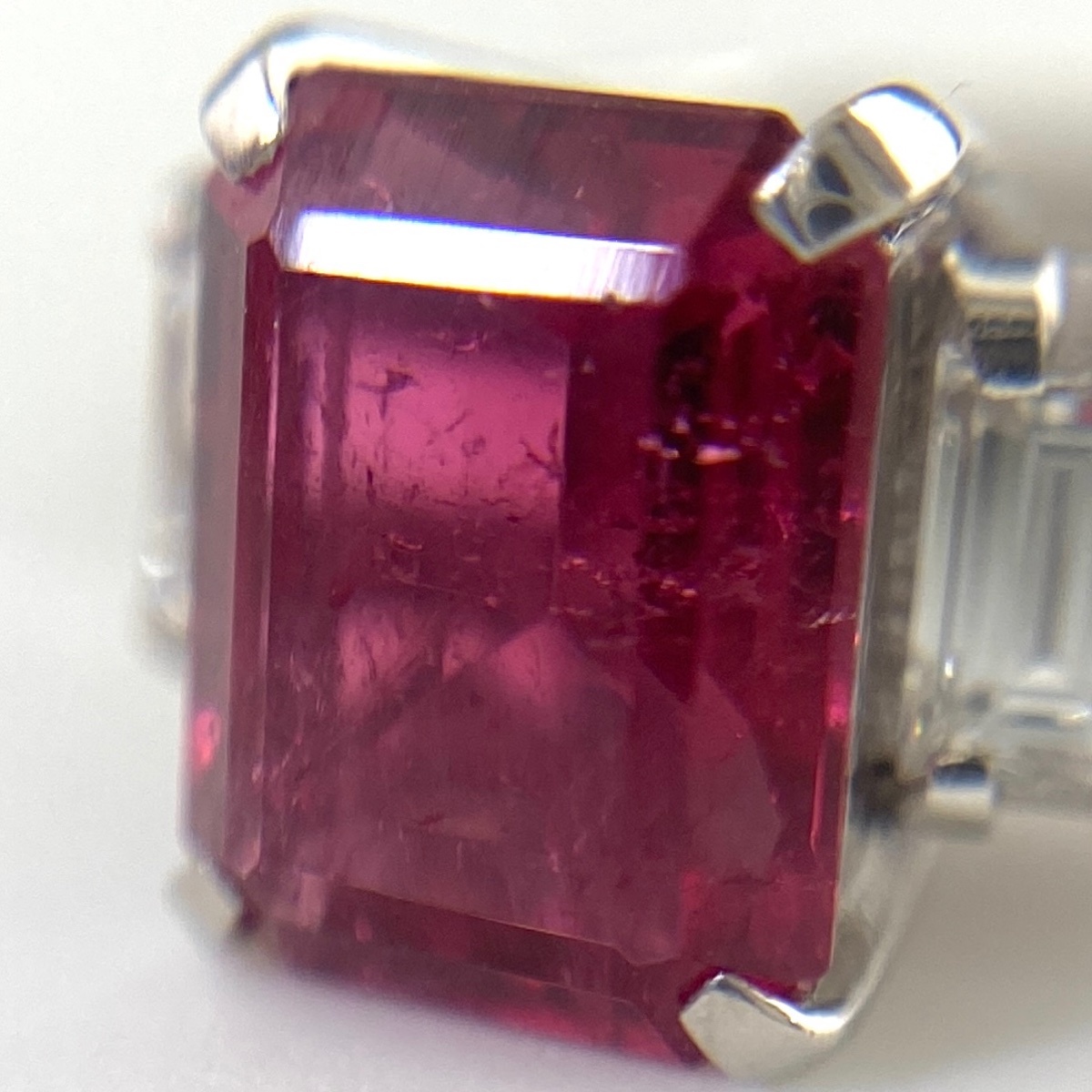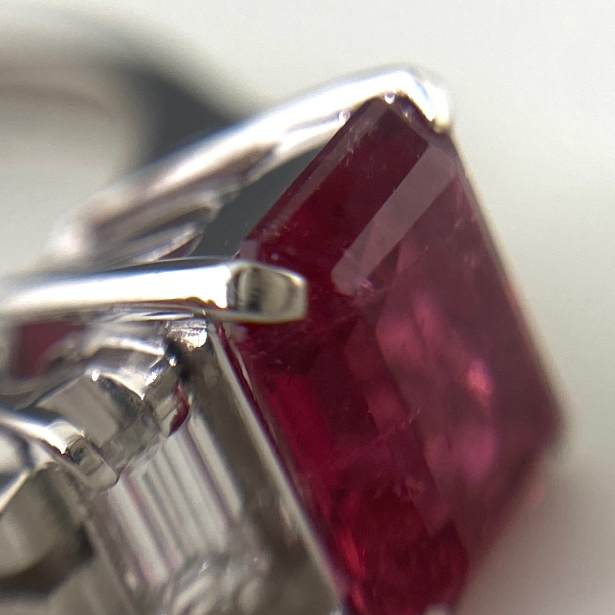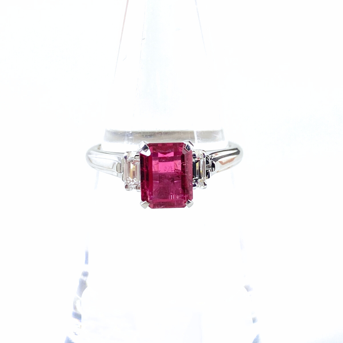 実寸サイズ| 約13号 | リング最大幅 | 約7.3mm | リング最小幅 | 約1.6mm | リング厚さ | 約8.0mm | 素材 | Pt900、ダイヤモンド、レッドトルマリン | コメント | レッドトルマリン:1.20ct、メレダイヤ:0.24ct | 中古品の為、若干のキズや汚れ、レッドトルマリンにキズがございます。 付属品 | ソーティング | |