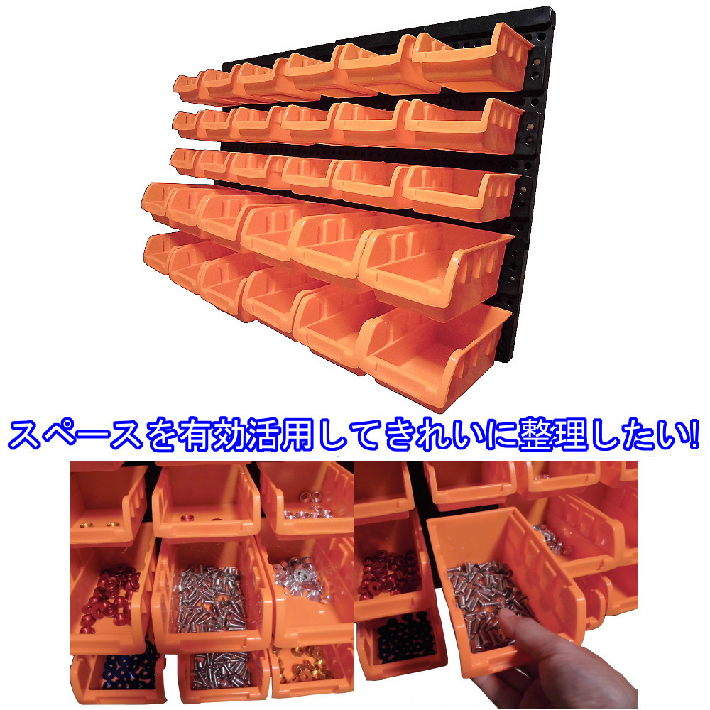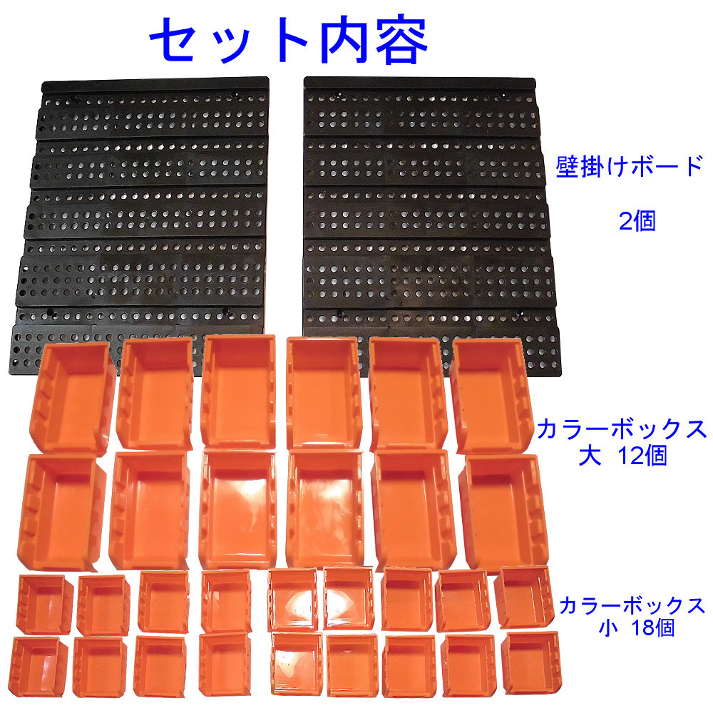 32PCS 小物 パーツケース ガレージの壁にビスで取り付けられる部品収納ケースです。大小2種類の大きさのカラーボックスを、壁掛けボードの中に自由にレイアウトできます。乱雑になりがちなガレージの工具や部品をきれいに整理でき、作業効率をUPすることができます。