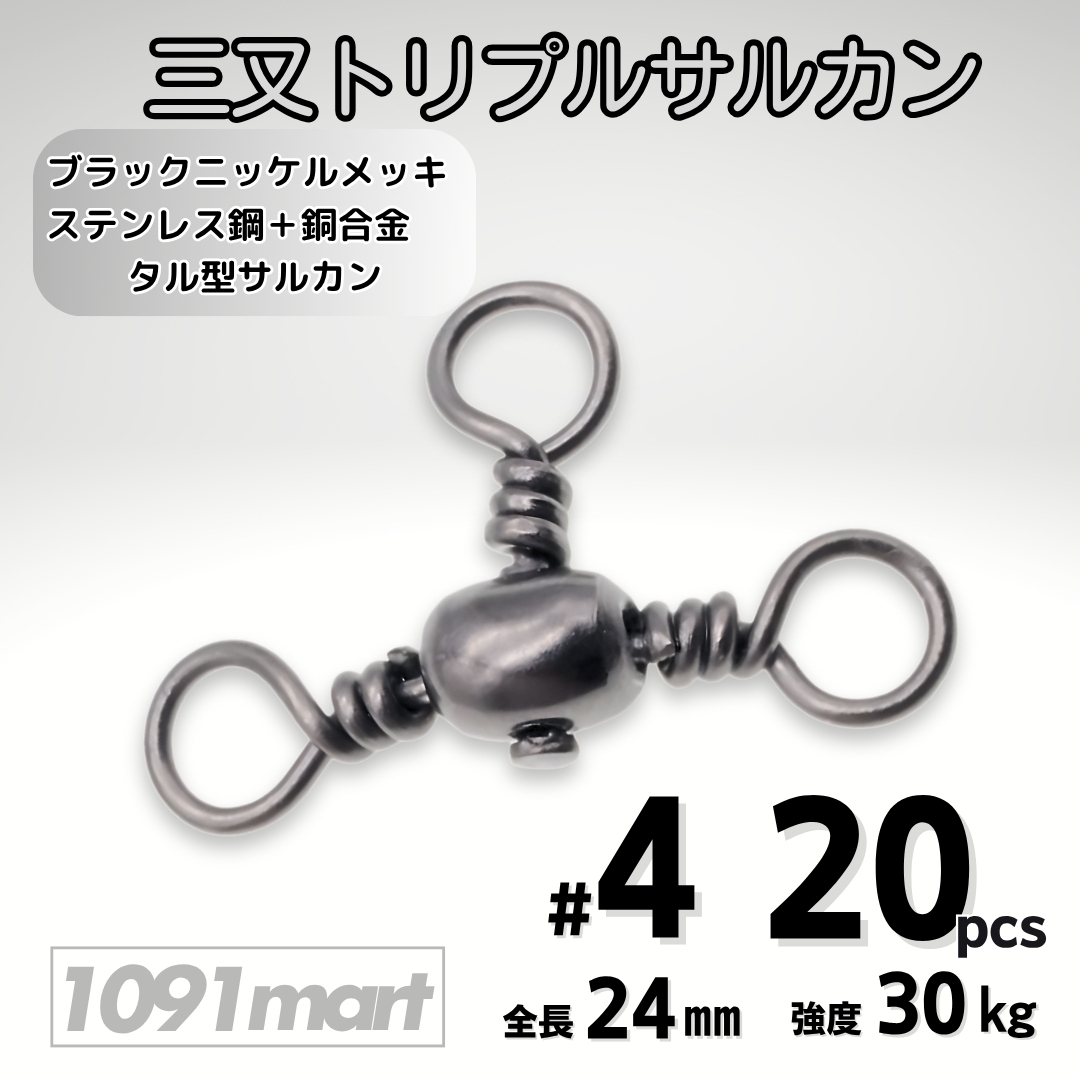 三又サルカン トリプルサルカン #4 全長24㎜ 強度30㎏ 20個セット 胴突き仕掛け 捨てオモリ仕掛けに 三つ又 強力ヨリモドシ【1091mart】