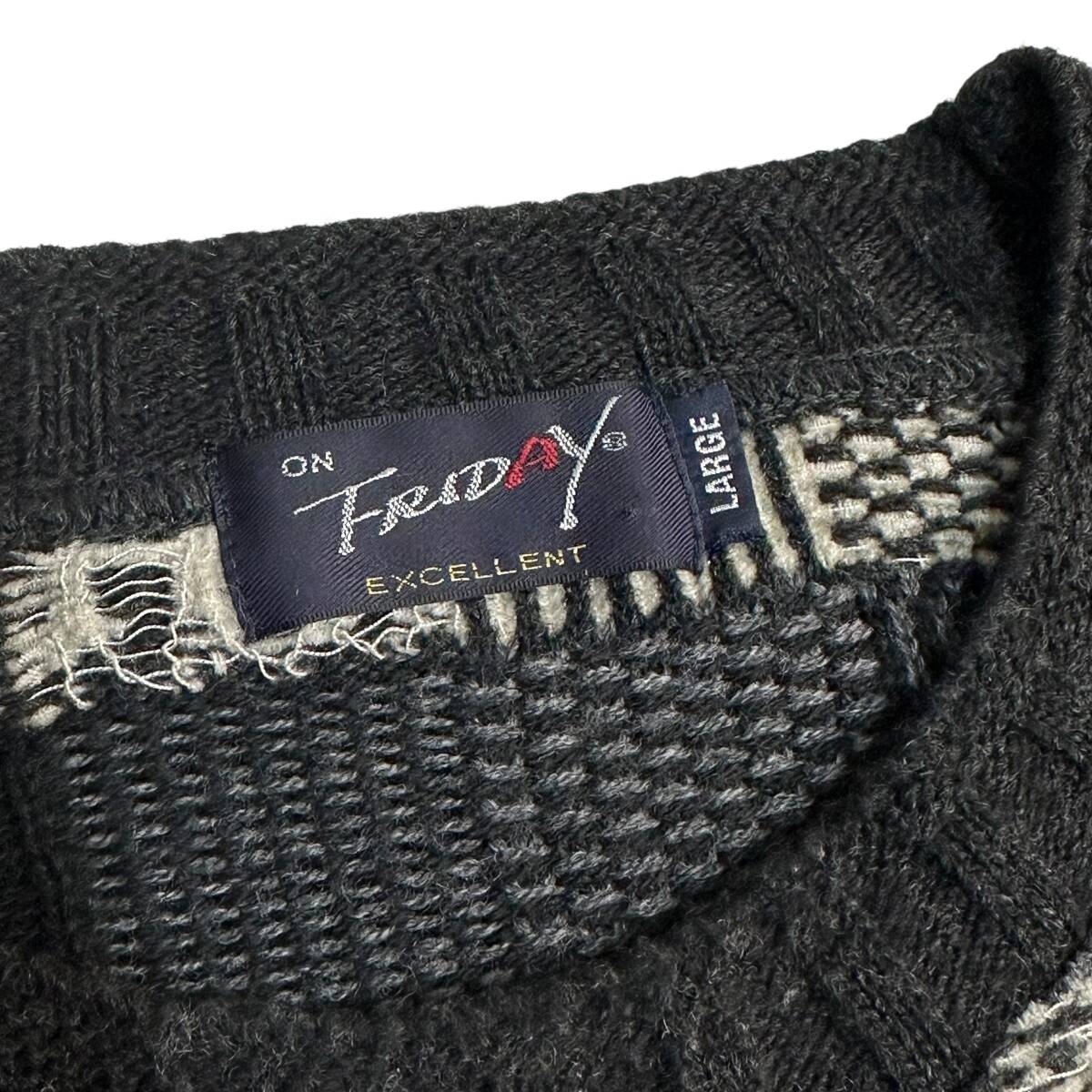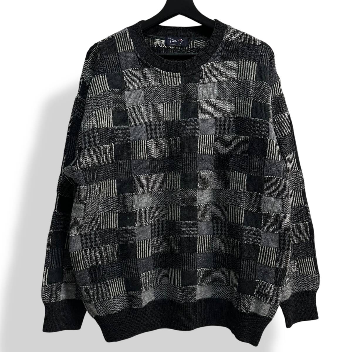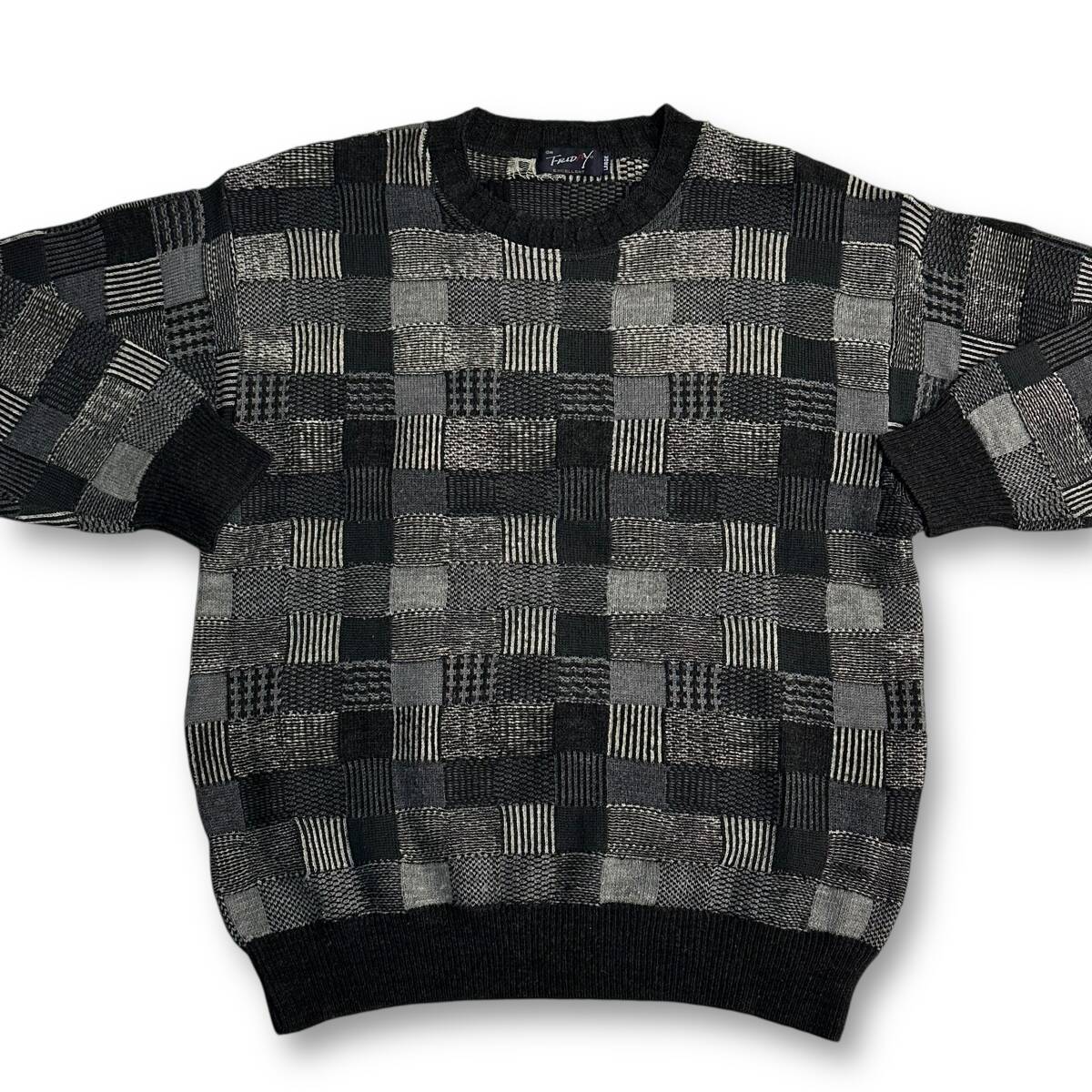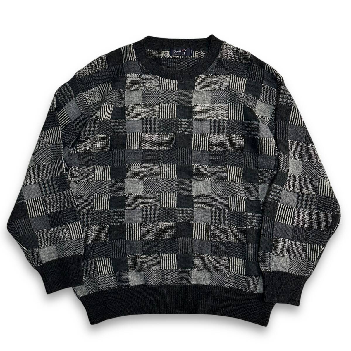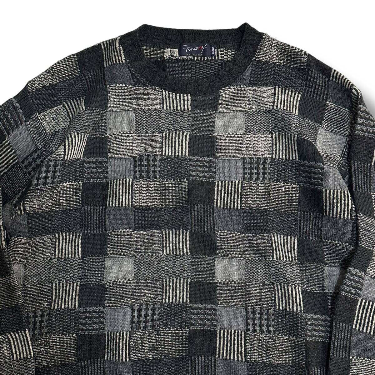 秀逸 レア【ON FRIDAY】VINTAGE 80s 90s イタリア製 3D 立体 ビンテージクルーネックニット レトロ古着 オールド
