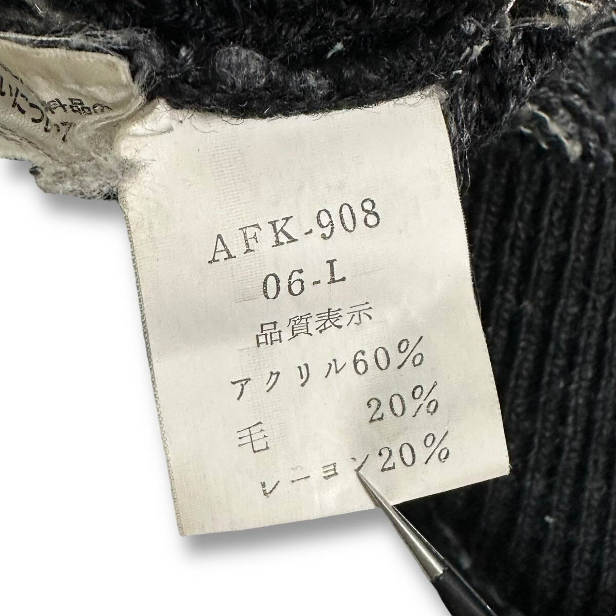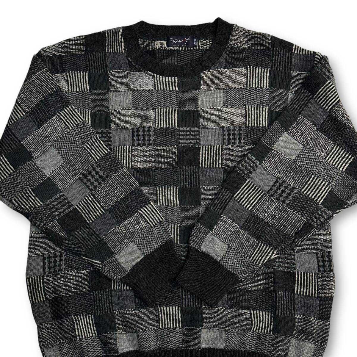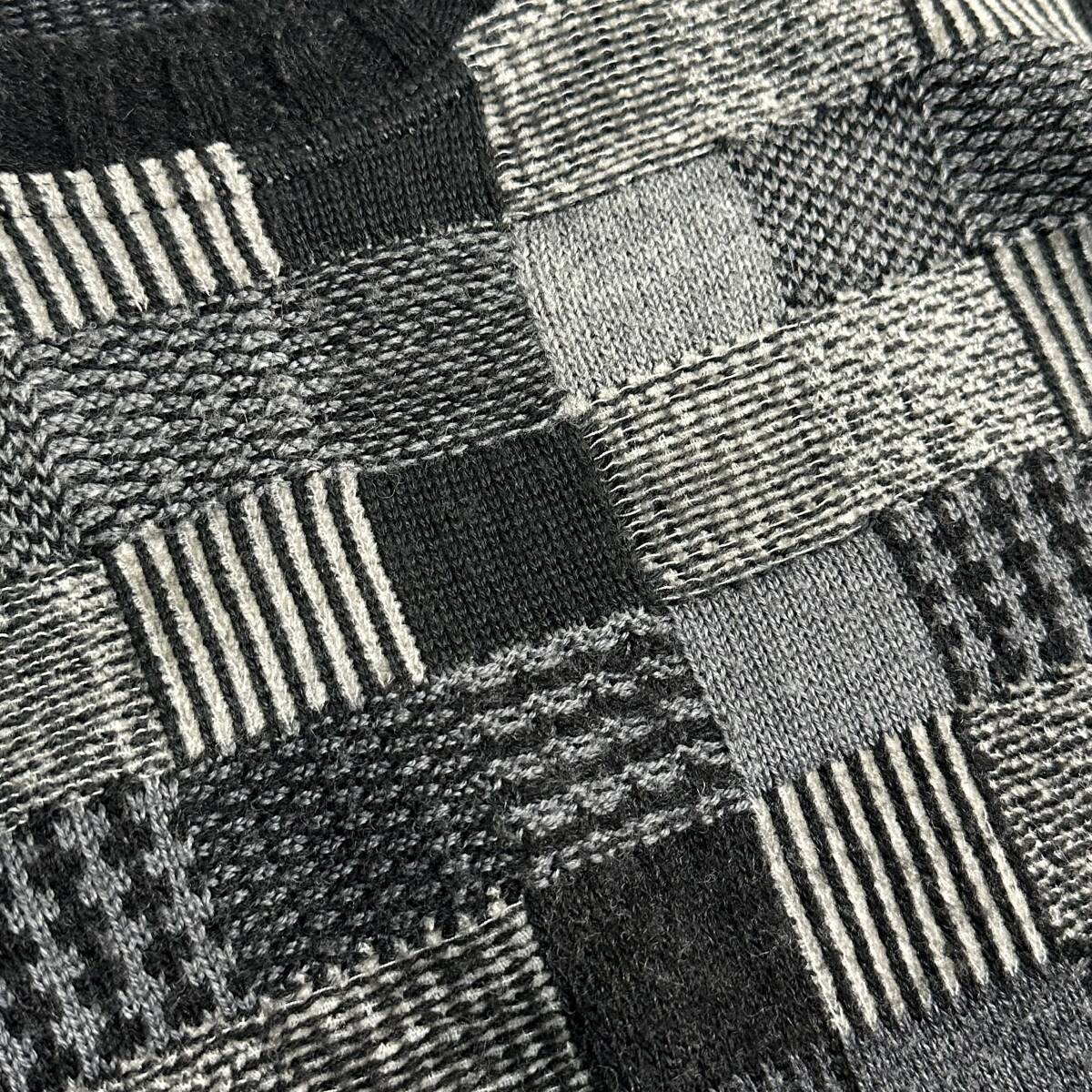 ブラックとグレーのカラートーンでカジュアルからモード等とスタイルコーデしやすいレトロビンテージクルーネックニット