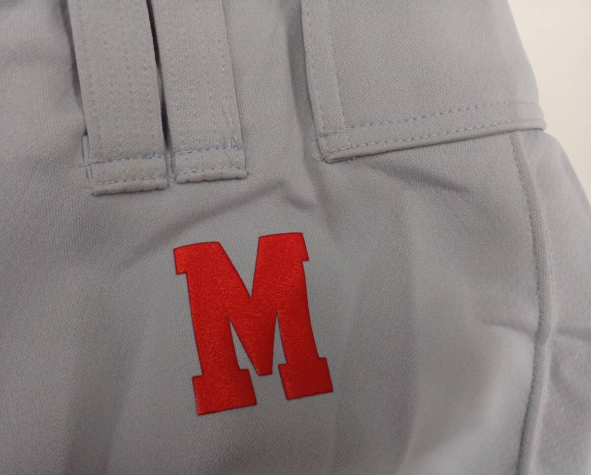 Mのマークは洗濯すると剥がれて、ユニフォーム生地に色移りしている可能性大です。