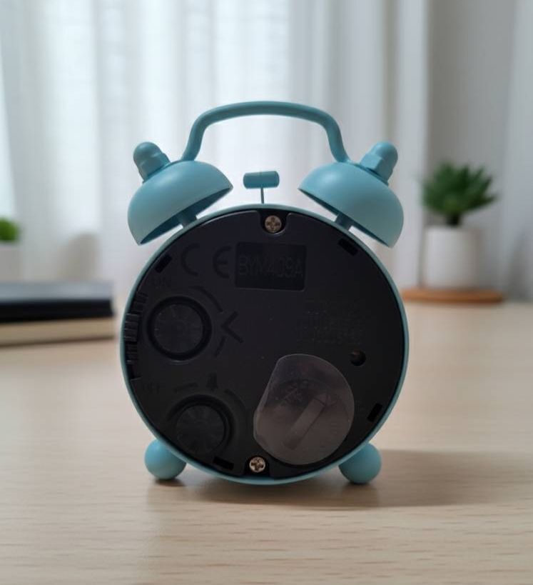シンプルでノスタルジックなツインベルデザインが魅力の置き時計です。リビングや寝室、デスク周りのアクセントにぴったりです。