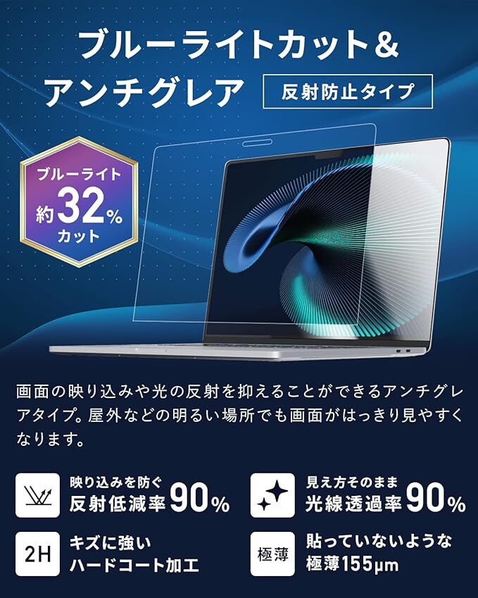 • 日本製 保護フィルム ブルーライトカット アンチグレア 反射防止タイプ:反射低減率90% 光線透過率91%
