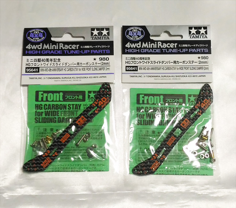 タミヤ (95641)/ ミニ四駆40周年記念 HGフロントワイドスライドダンパー用カーボンステー(2mm) 2個セット/ 新品未開封