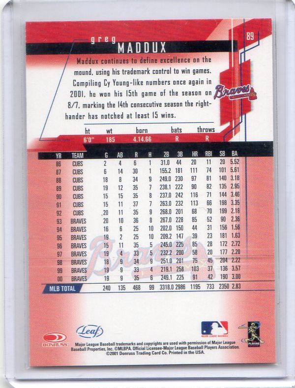 | ★☆グレッグ・マダックス カード Vol.46 2001LEAF ROOKIES & STARS #89☆★ | |