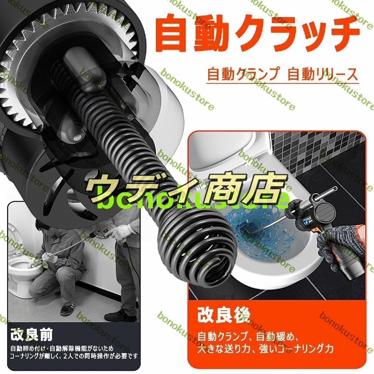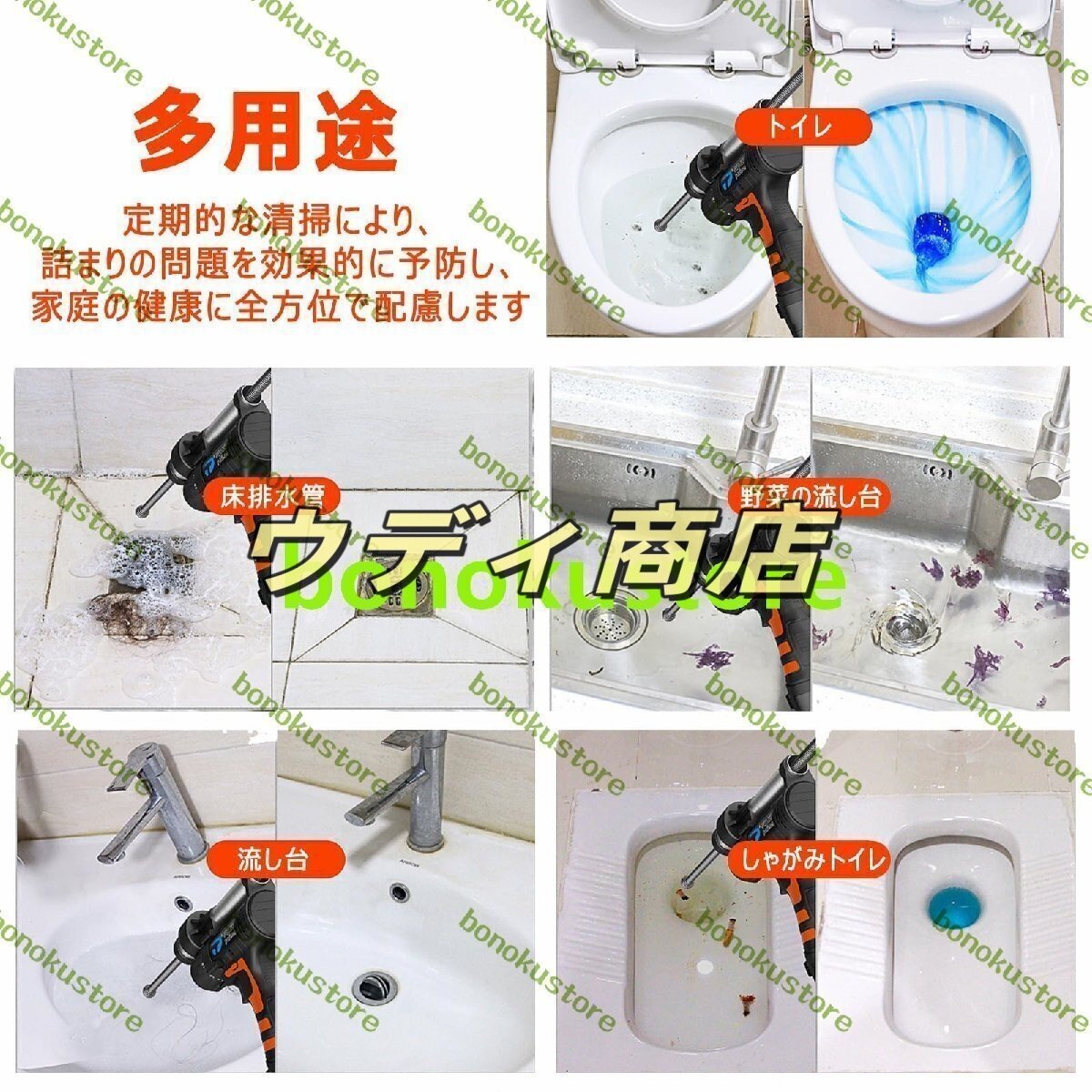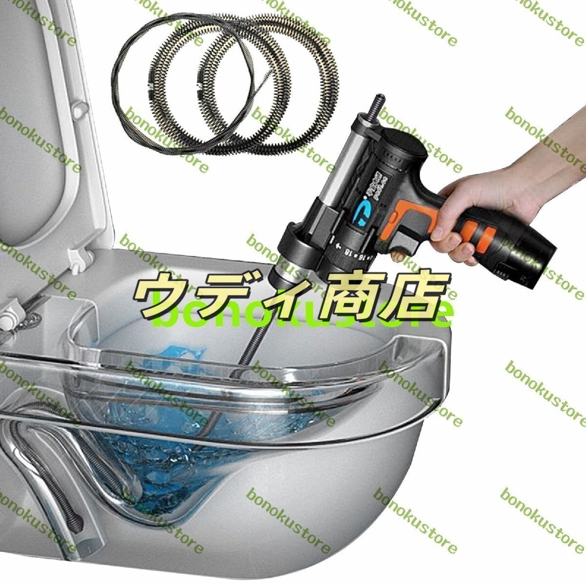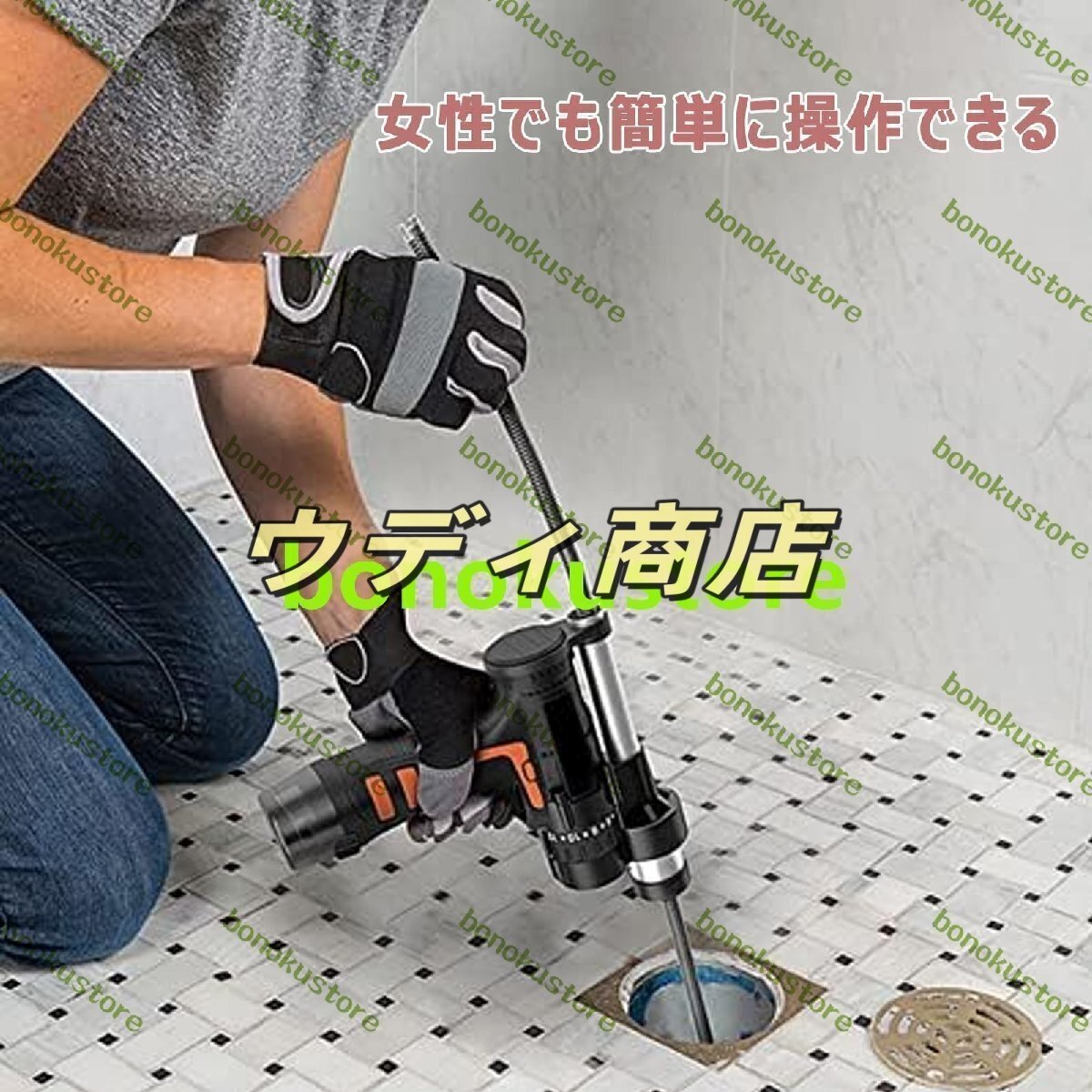 電動トイレつまり解消道具 電気ドレインオーガー 改良型 電動パイプクリーナー ポータブル 充電式 電動詰まり解消ツール 簡単に操作可能 一人での操作 トイレ、下水道、浴槽、キッチンシンク用 疏通ツールー 水道屋さん 家庭用 業務用 12V 7.5M