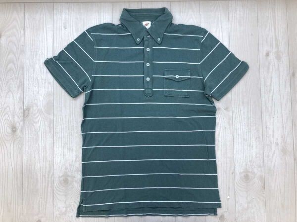 ユニクロ UNIQLO × マイケル・バスティアン Michael Bastian ボタンダウン ボーダー 半袖ポロシャツ メンズ コットン100% L 緑 です。