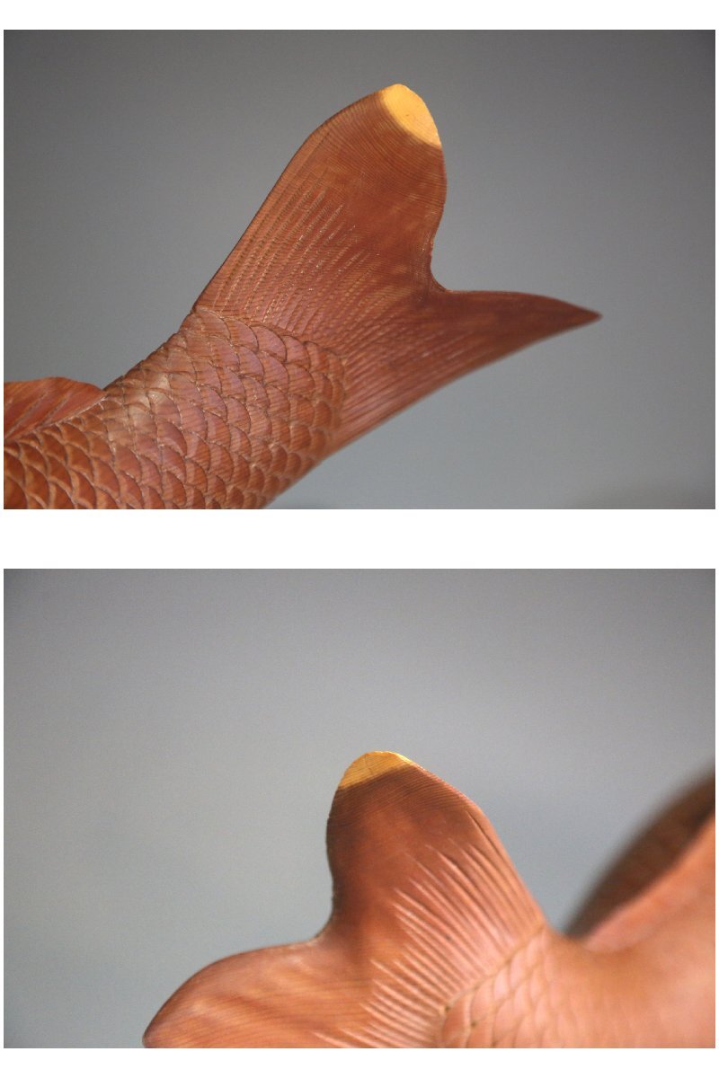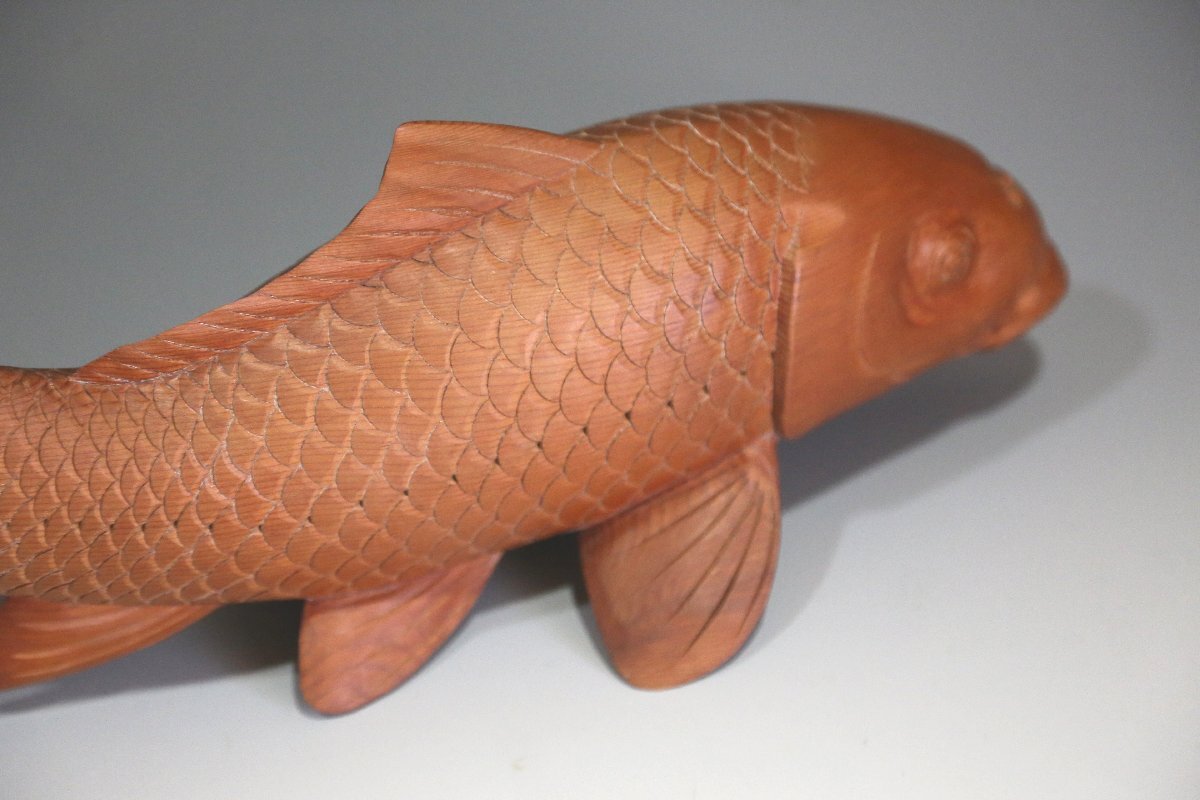 尾に白木部分を残して丁寧に彫られています。横33cm、縦13.5cm。お先に少し写真のところありますが、状態良好です。ノークレーム、ノーリターンでお願い致します。この他にも出品しておりますのでご覧下さい。ここをクリック
