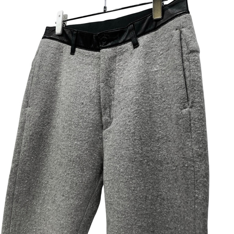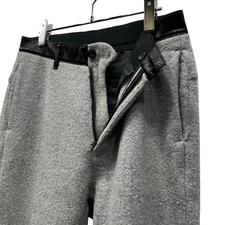 | ISAMU KATAYAMA BACKLASH 【men5059I】 圧縮ウールジャージーウエストレザーテーパードパンツ ボトムス 定価38,800円 バックラッシュ AR | |