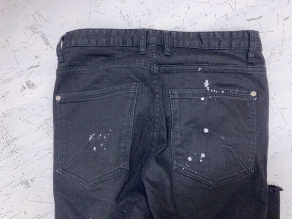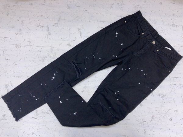 RINGS リングス ネオお兄 ロック パンク クラッシュ ペイント加工 ダメージ加工 裾カットオフ テーパード パンツ ボトムス メンズ 44 黒