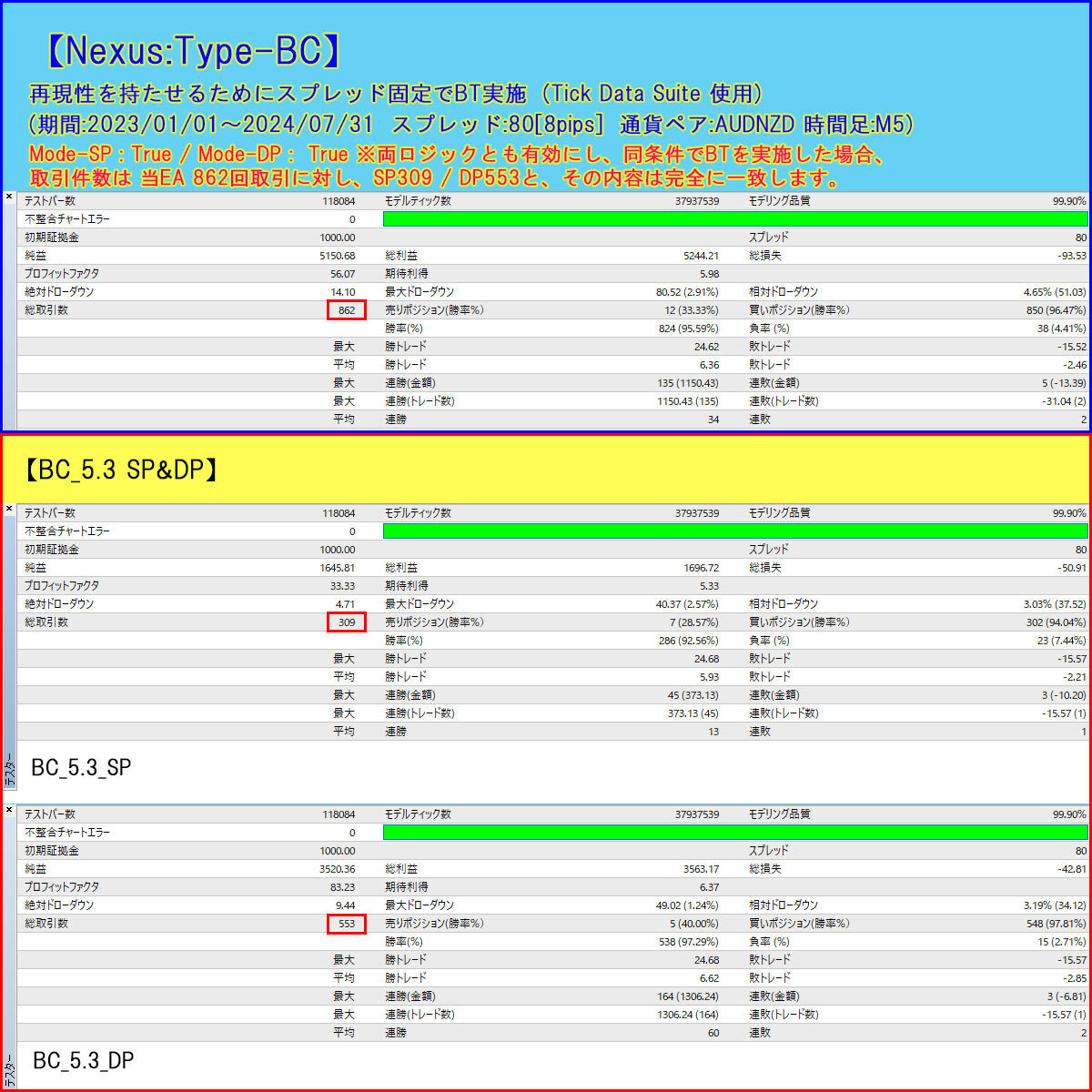 バックテスト含めオリジナル版と差異はありません(※画像参照)
