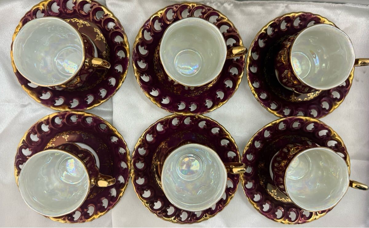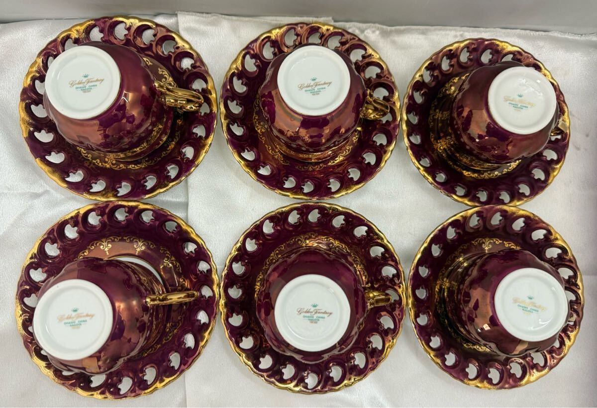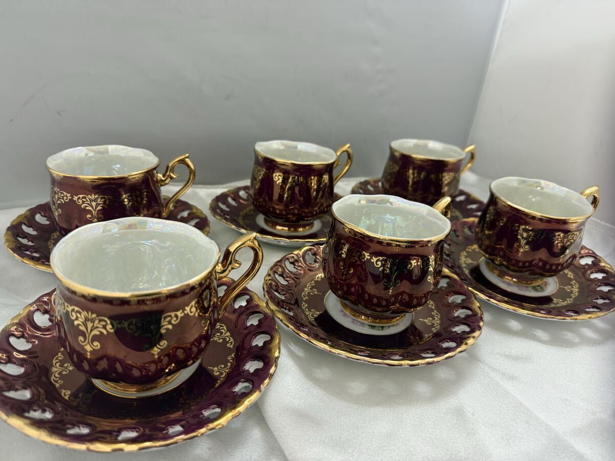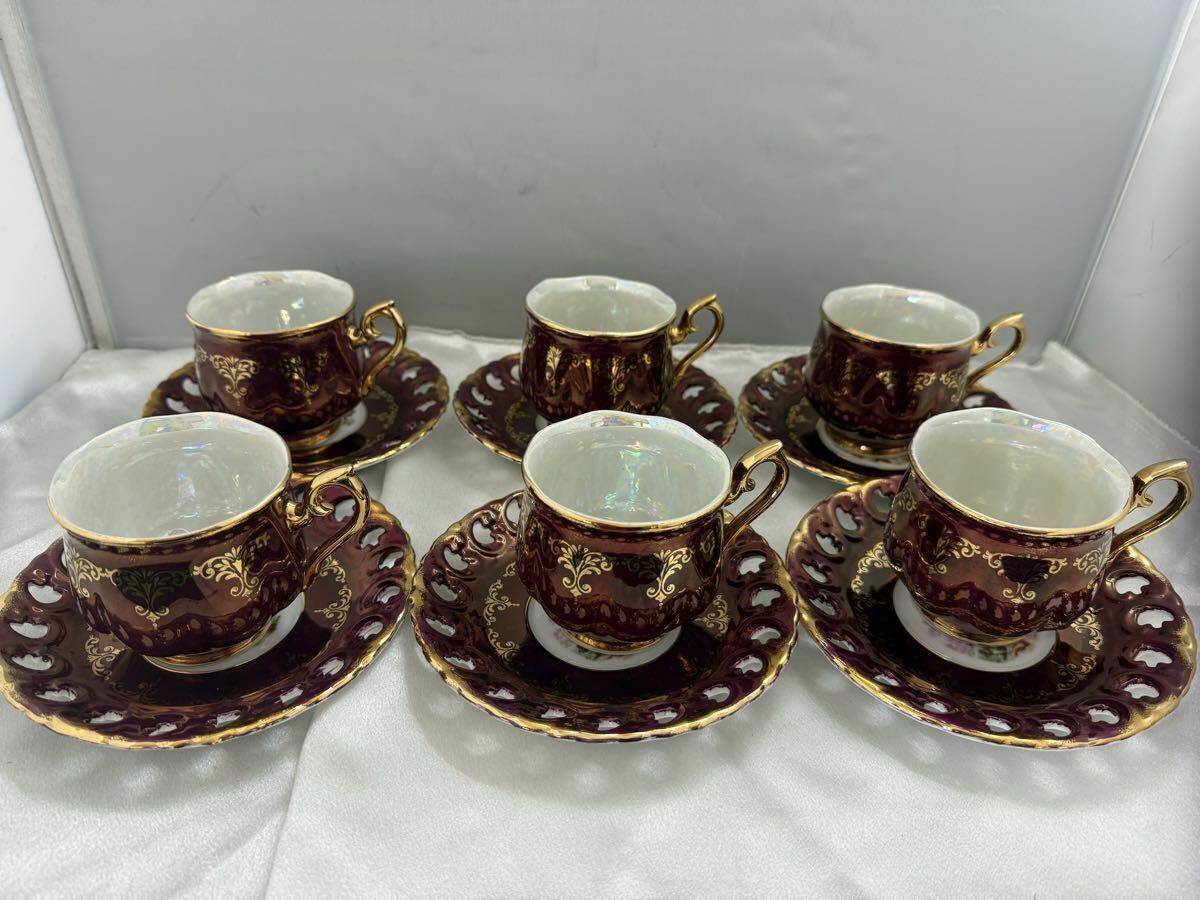 深みのある赤色に金彩が施された美しいカップ&ソーサーです。