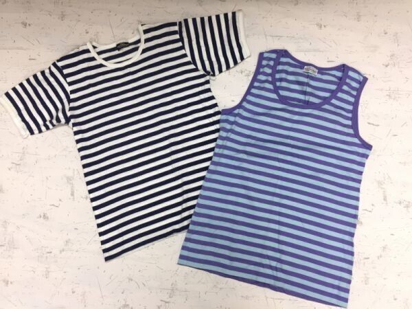 マリメッコ marimekko フィンランド製 ボーダー 半袖Tシャツ ノースリーブ 2点セット まとめて レディース/キッズ M/140 紺紫 です。