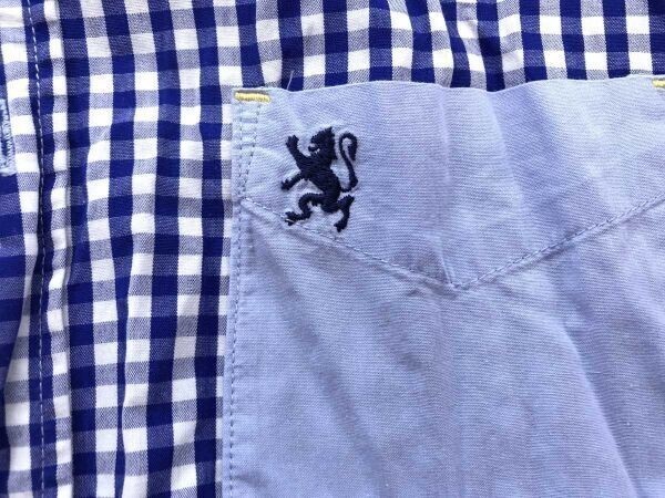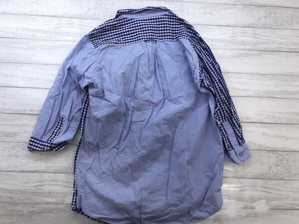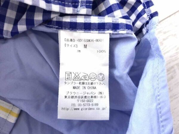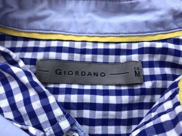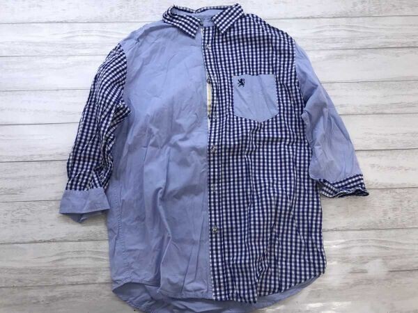 ジョルダーノ GIORDANO 香港発アメカジ トラッド ギンガムチェック切替 クレイジーパターン 七分袖シャツ メンズ コットン100% M 青 です。